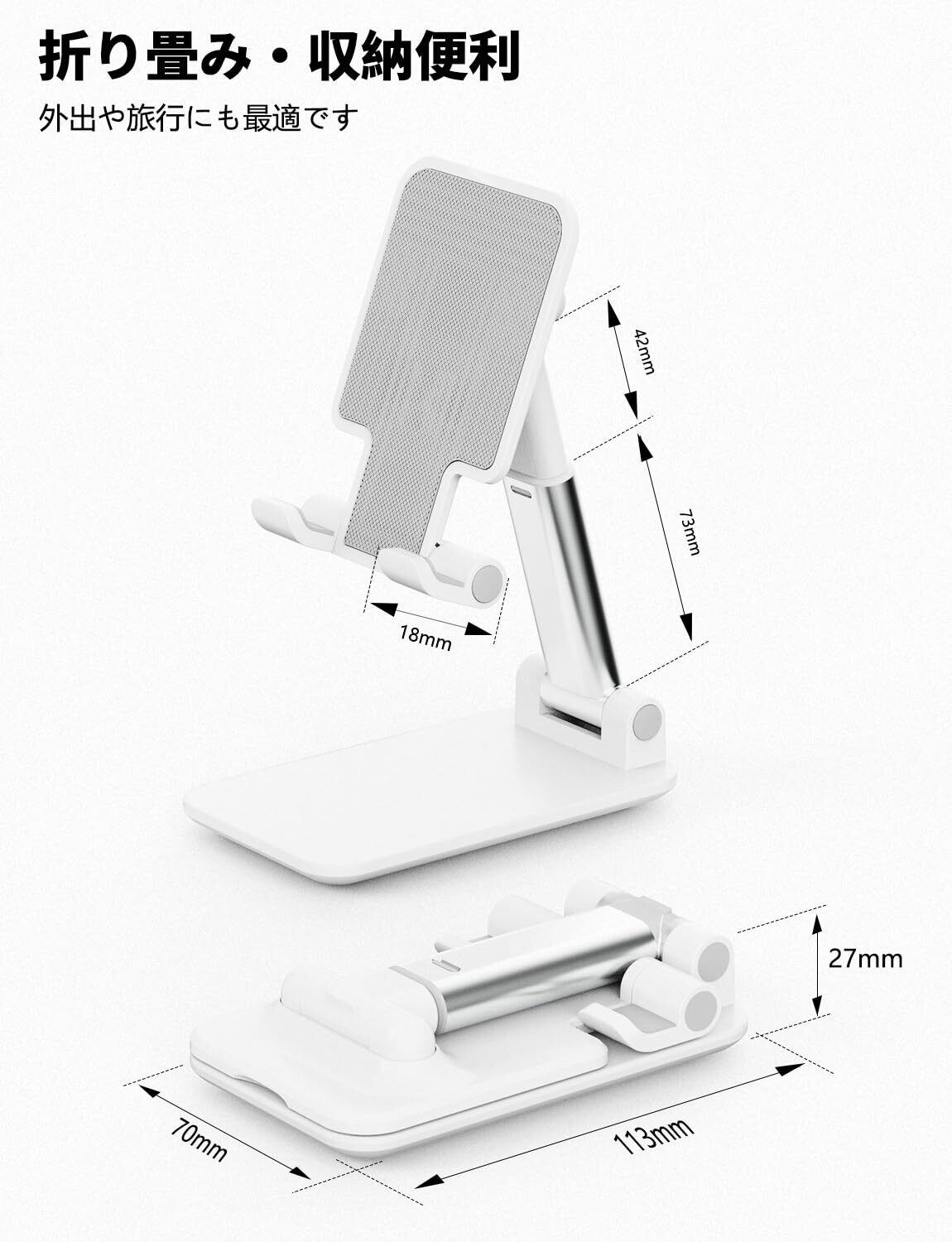 [ 2個セット] ZEEKK スマホスタンド 卓上 スタンド ホルダー 高度調整可能 スマホ スタンド おりたたみ 滑り止め 携帯 スタンド For iPhone/Kindle/Nintendo Switchなど(ホワイト)