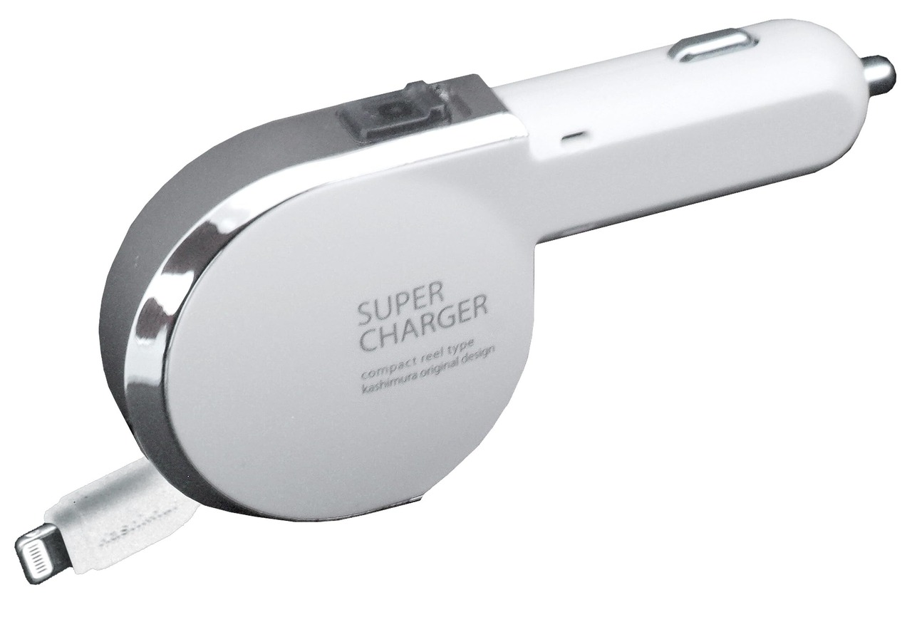 カシムラ 車内用iPhone充電 LightningリールDCチャージャー 2.4A ホワイト NKL-35 NKL-35