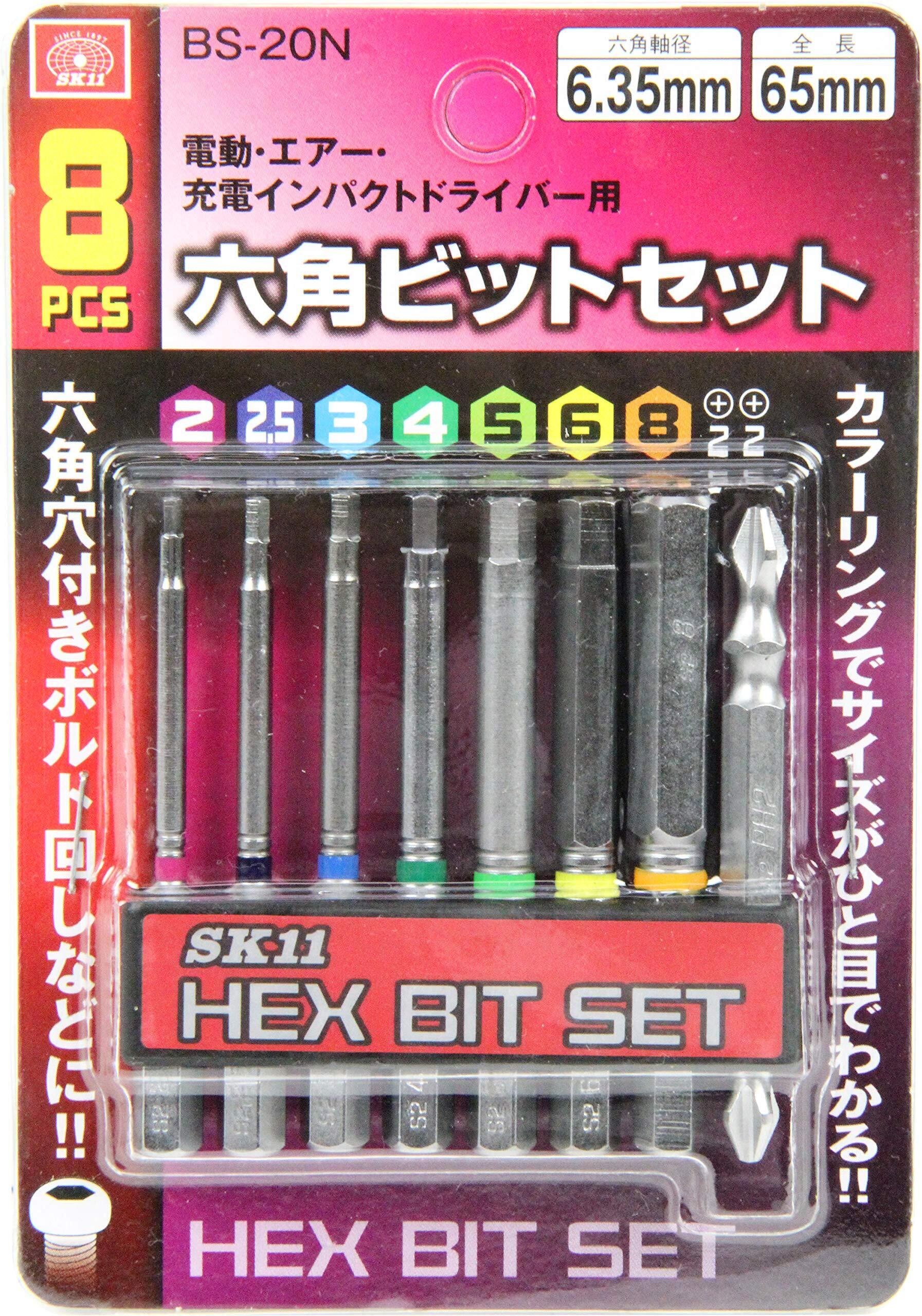 SK11(エスケー11) 六角ビット 8点セット 65mm BS-20N 六角軸 6.35mm