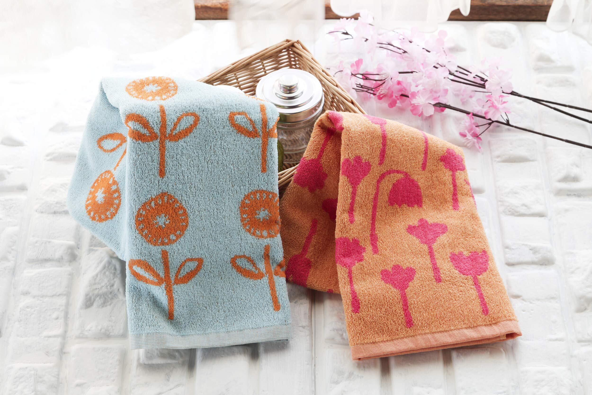 Kosugizen ミニバスタオル 北欧調ジャガード フラワー 2色(2柄)各1枚入 50×100㎝ 小さなサイズのバスタオル デイリーユース 2枚セット SV-461-2