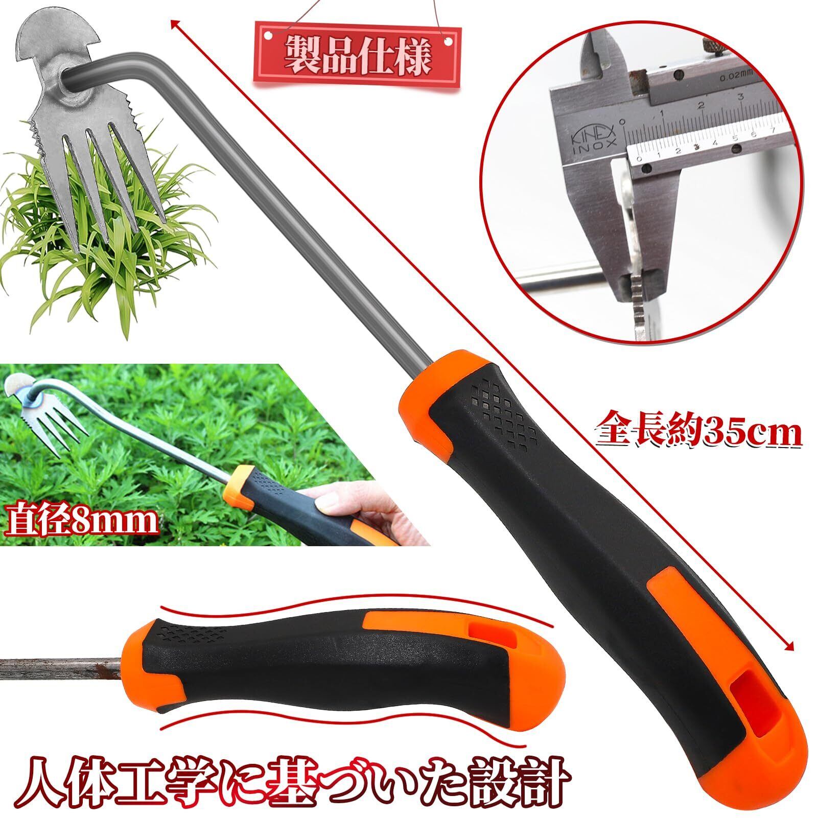 4本爪の多目的草取り道具:人間工学に基づいたデザインの除草ツールは、雑草を簡単に取り除くことができます。延長デザインのハンドルは使用範囲を広げ、尖った先端は狭いスペースでも簡単に扱えるため、さまざまな環境に適しています。