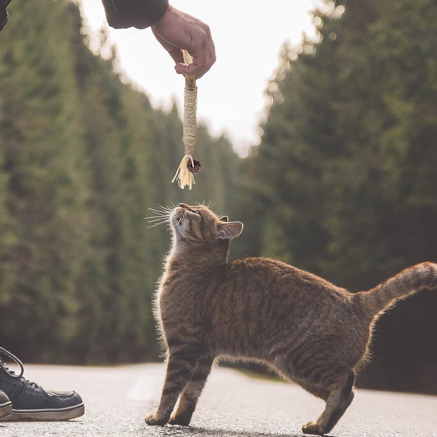 PAKESI 猫 噛むおもちゃ 歯磨き 歯ぎしり棒 またたび 天然木 麻縄 4本入り 天然安全 噛むスティック 歯のクリーニング 無毒 肥満解消 運動不足解消 ストレス解消