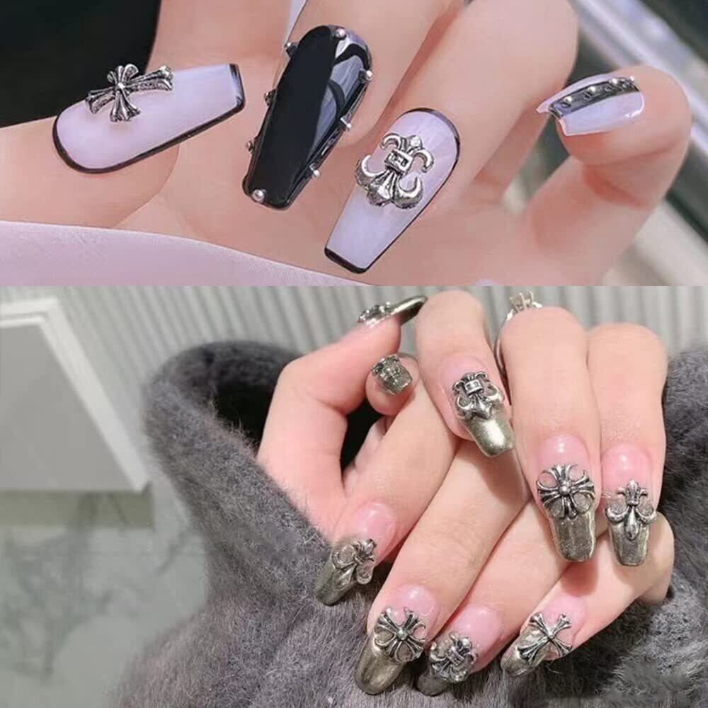 LIKENNY ネイルパーツ パンク風 メタルパーツ レトロ シルバー ネイルアート用品 DIY クラフトアクセサリー 金属パーツ 3D立体感 ネイルパーツ (50個)