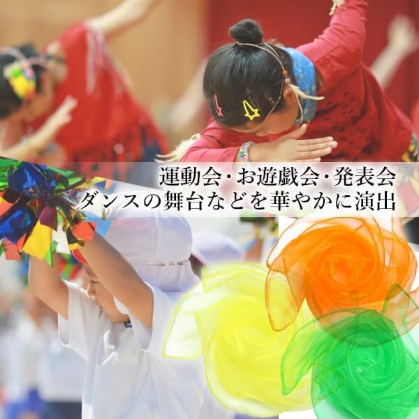 【商品説明】 リトミック、ダンス、マジック、手芸などに最適 音楽に合わせて、自由に表現! 運動会、お遊戯会、発表会、ダンスの舞台など華やかに演出! 独特な質感とカラフルな色は手にしただけで想像力アップ 【商品仕様】 カラー 10色