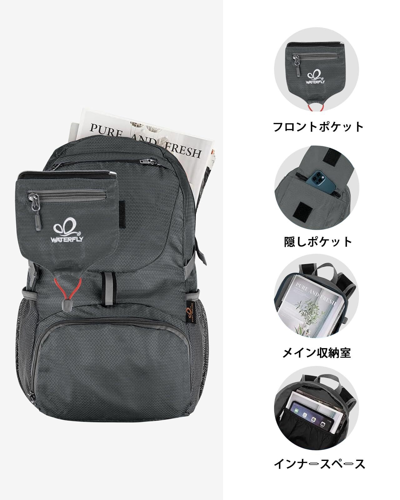 [ウォーターフライ] 折りたたみ バックパック 超軽量 大容量 防水 耐久性 ハイキングバックパック 旅行 収納 買い物 ハイキング トレッキング キャンプ 登山 アウトドア リュック