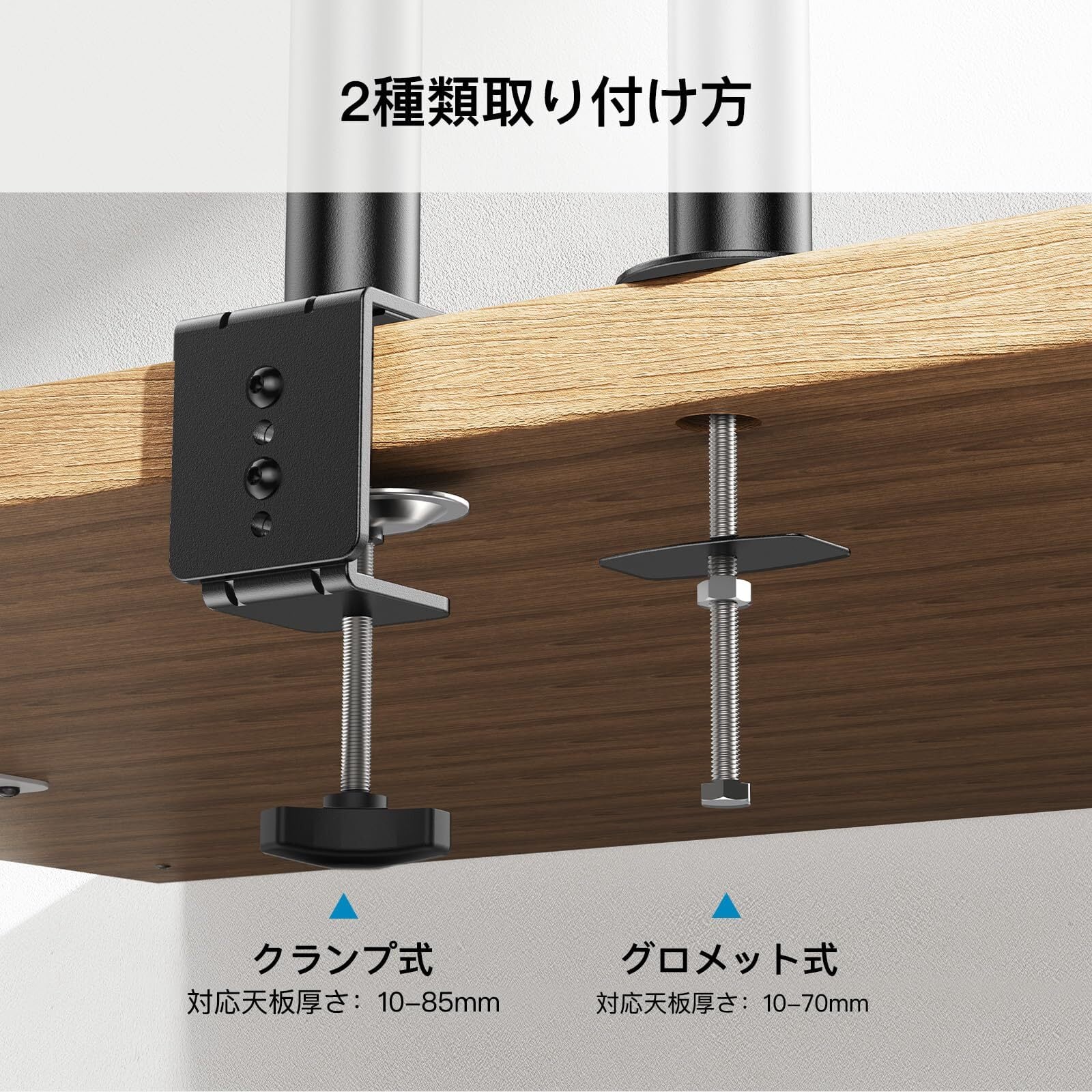 【組立・取付簡単】クランプ固定とグロメット固定二つの取り付け方があります。机にしっかり固定するので、液晶ディスプレイの転倒を防ぎ、耐震にも効果があります。