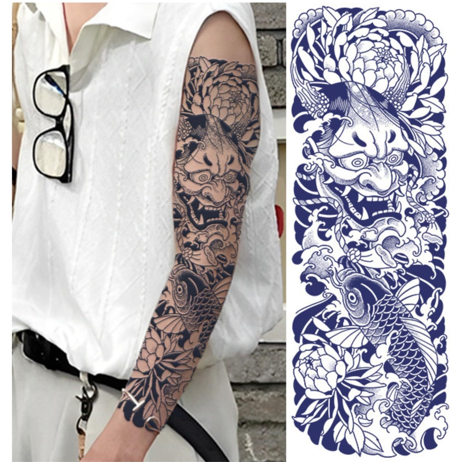 ジャグアタトゥー シール 2週間で消えるタトゥー タトゥーシール 和彫り 腕 韓国 般若 龍 虎 鯉 (B)