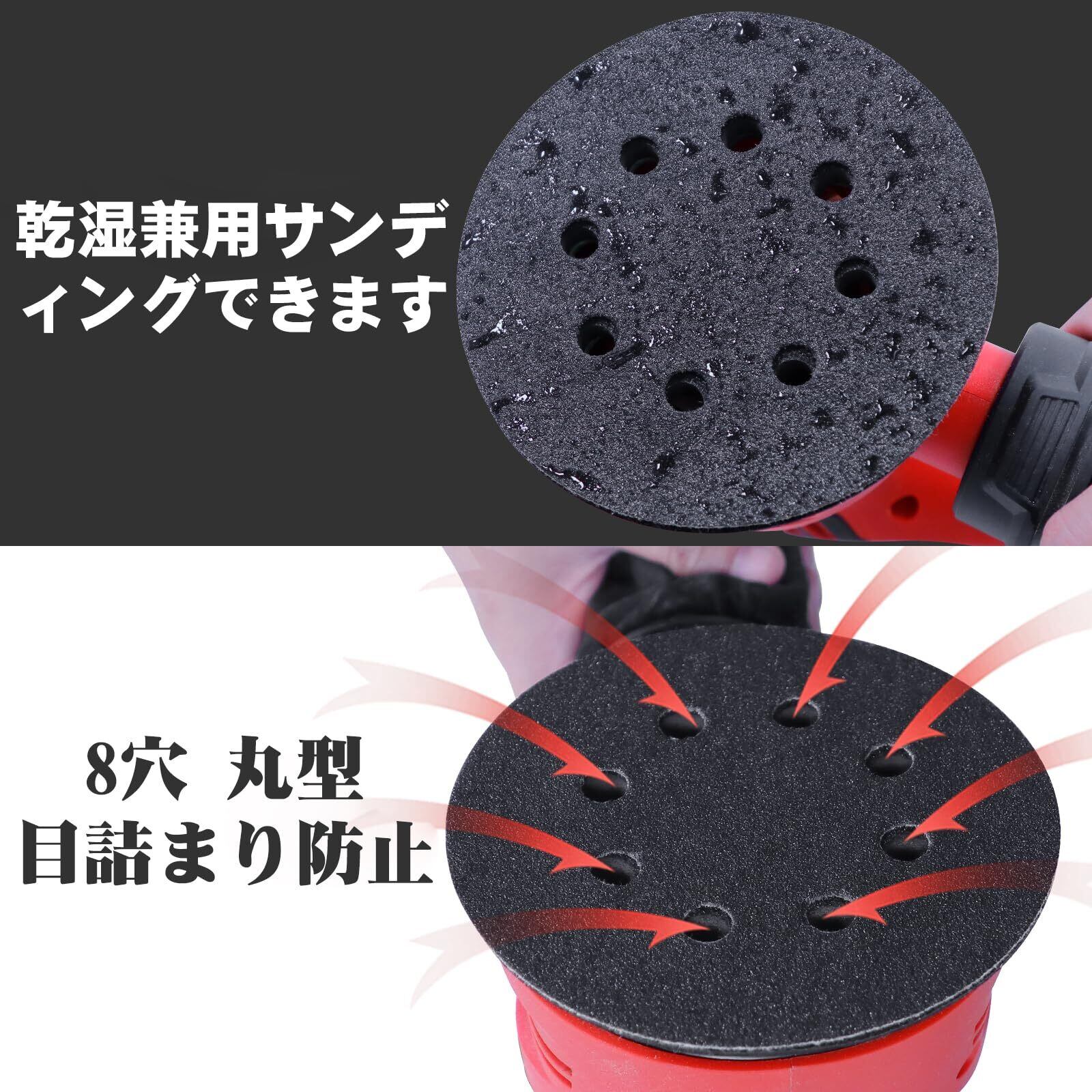 サンディングディスク 125mm 耐水サンドペーパー 8穴 丸型 100 枚入 80 120 180 240 320 400 600 800 1000 2000 各10枚 電動サンダー 用