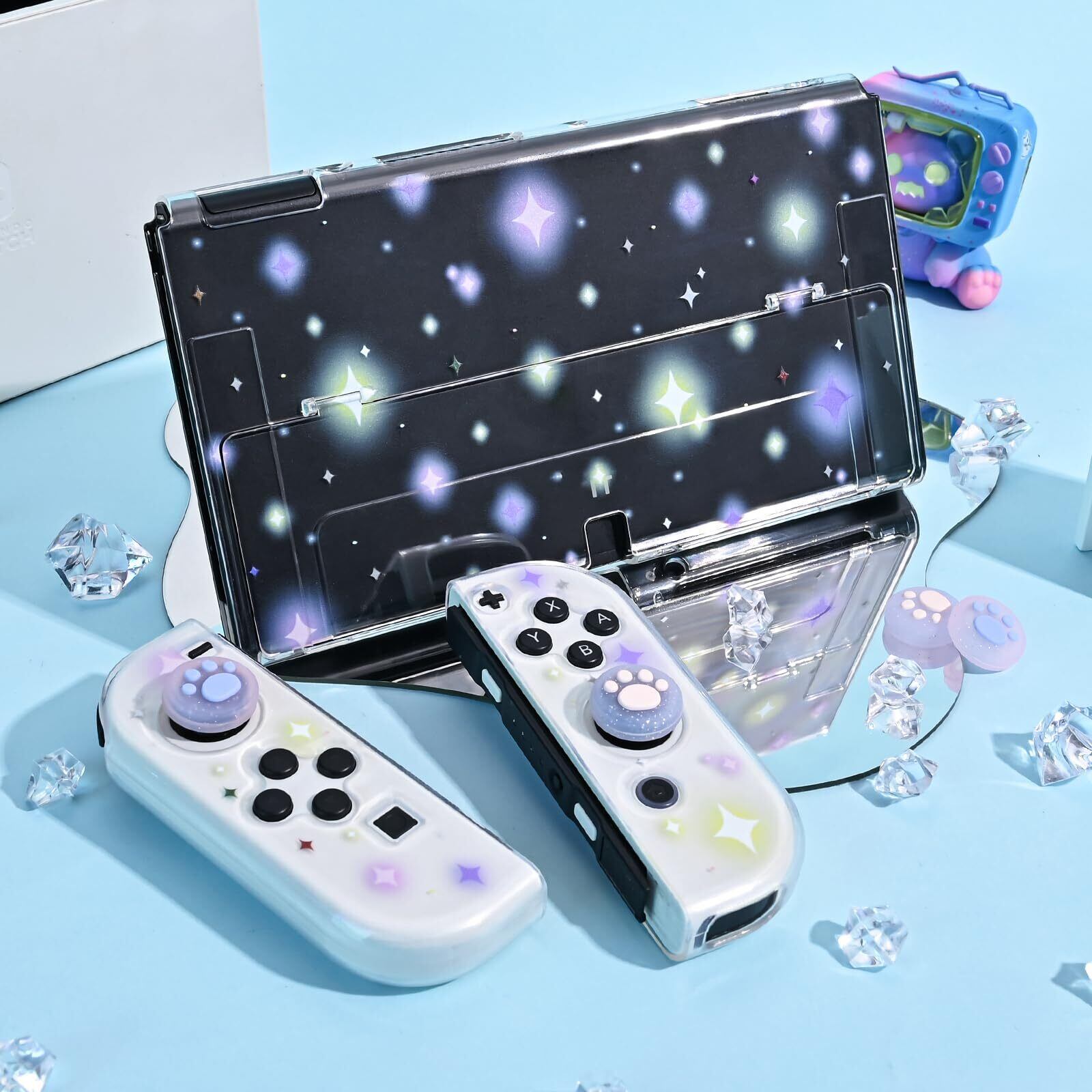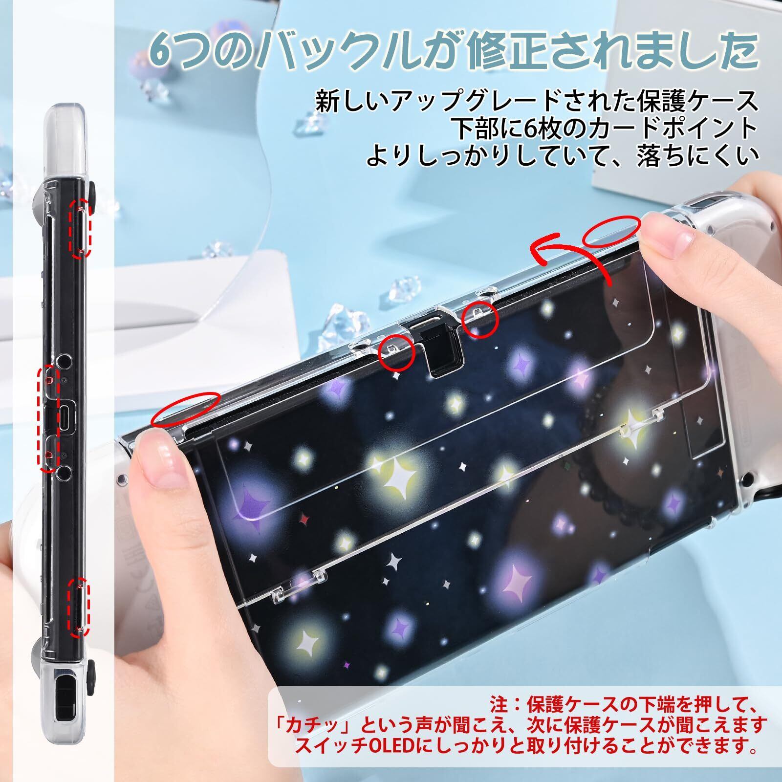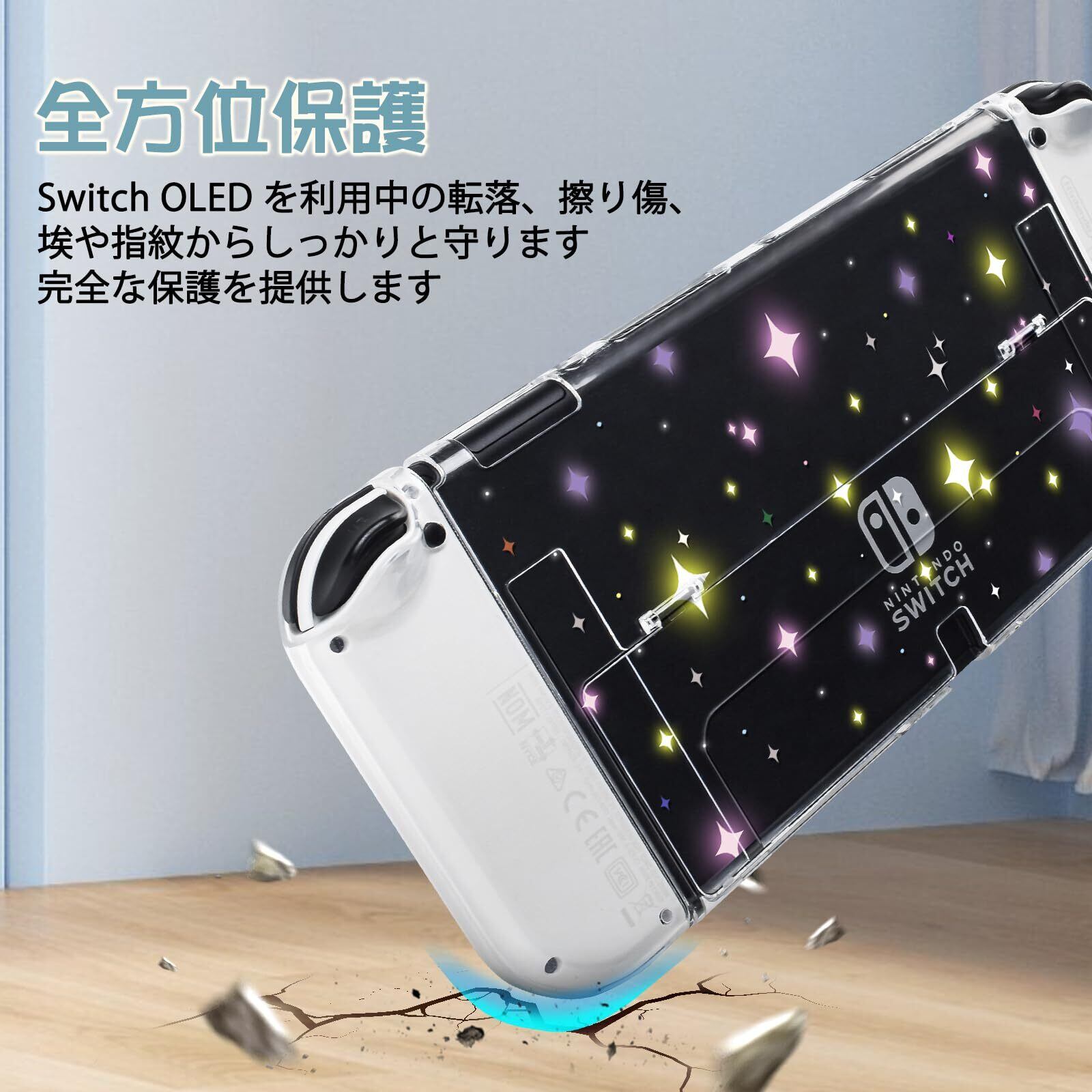 DLseego Switch OLED用ケース スイッチ有機elカバー 有機elモデルケース 分離式カバー 超軽量 耐衝撃 傷つけ防止 全面保護 取り外し簡単 キラキラ 紫 星