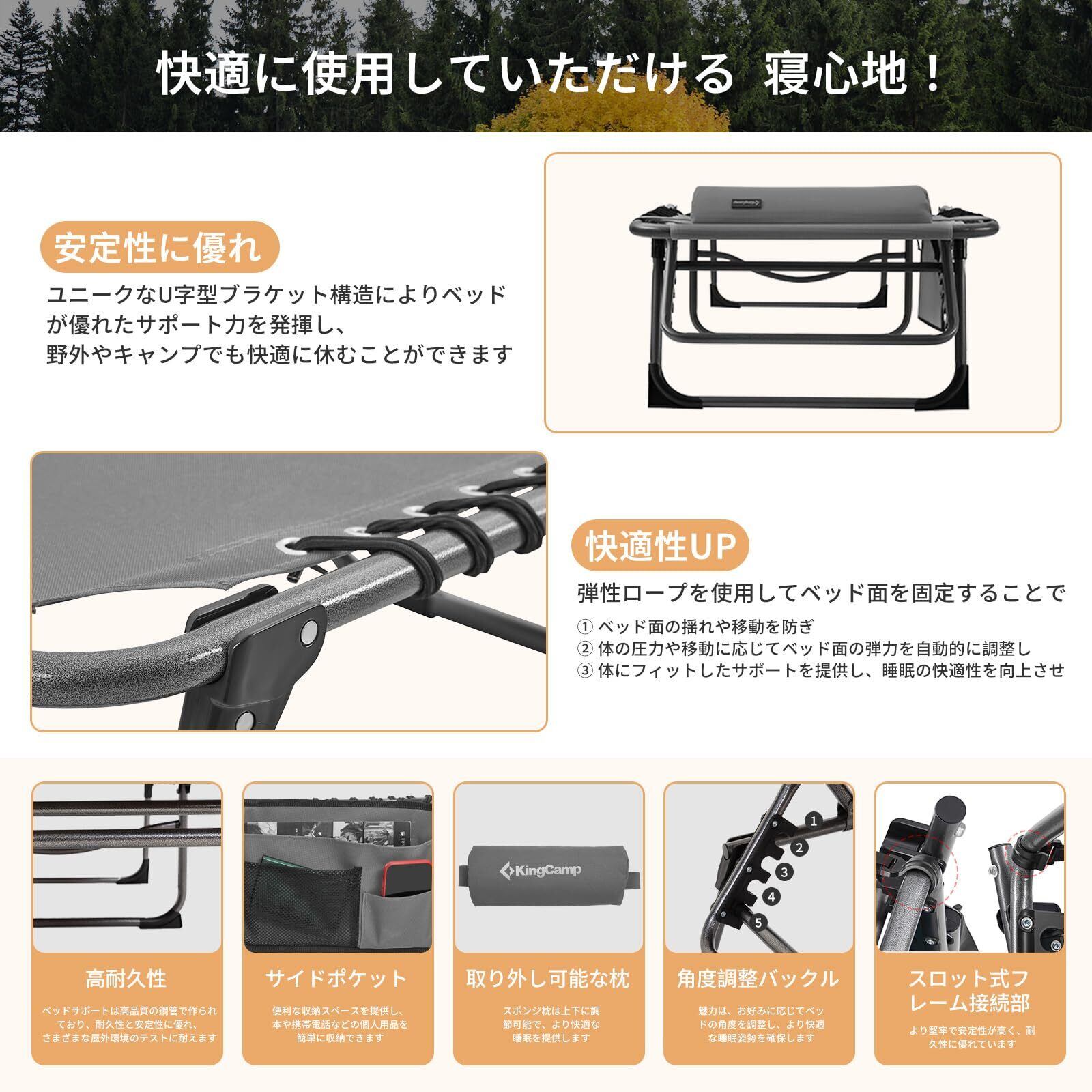 KingCamp サマーベッド 折りたたみベッド コット 3way 簡易ベッド アウトドア 5段階調節 寝心地良い ビーチチェア 600Dオックスフォード 耐荷重120kg 小物収納 昼寝 室内外兼用 190 x 59 x 37cm