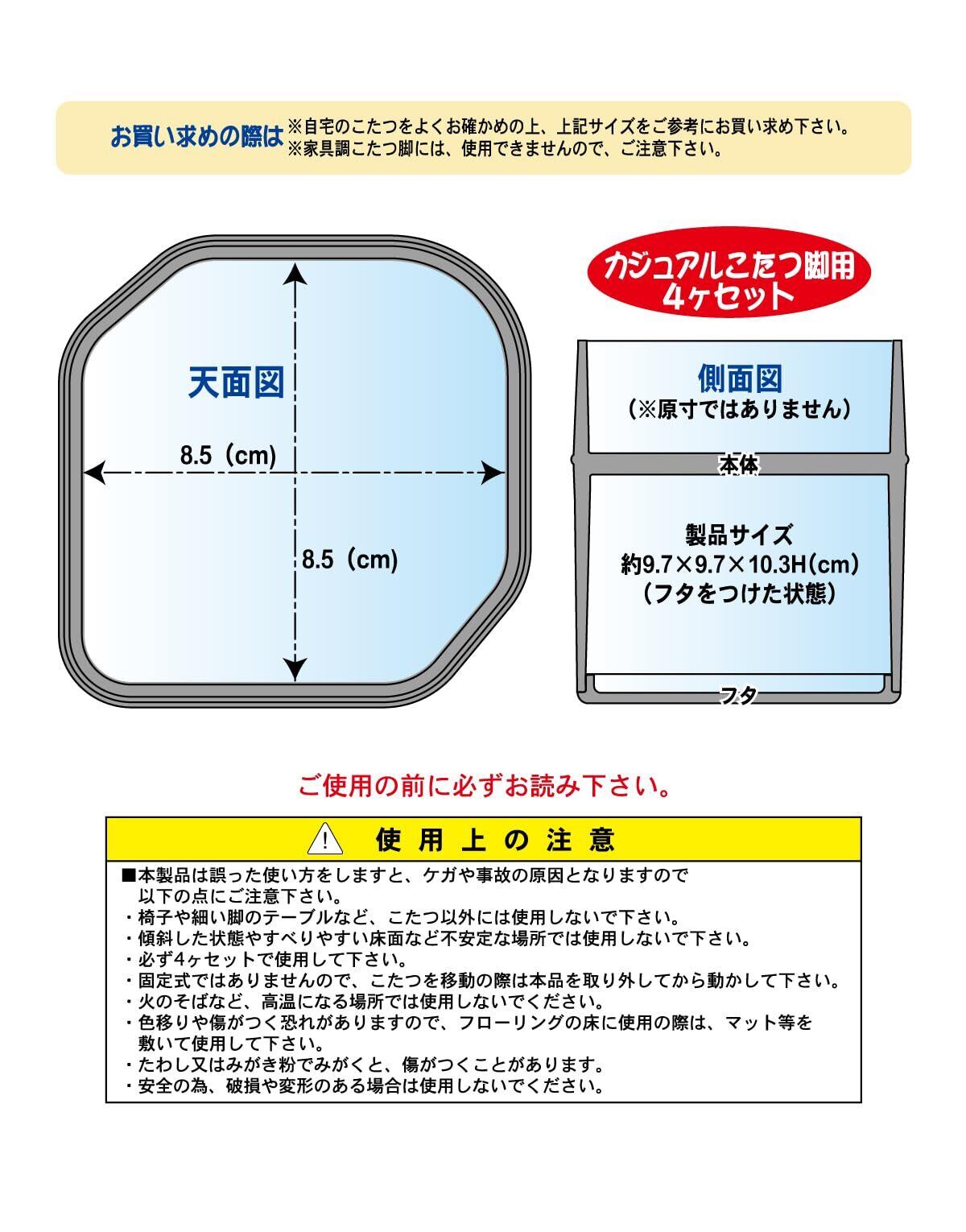 カジュアルこたつの脚にはめ込むだけの簡単取り付け可能です。