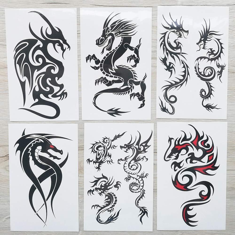 Yesallwas タトゥーシール 龍 飛竜 6枚セット 黒 竜 入れ墨シール タトゥーステッカー ボディーシール 刺青シール 長持ち 防水 メンズ 約12cm×19cm