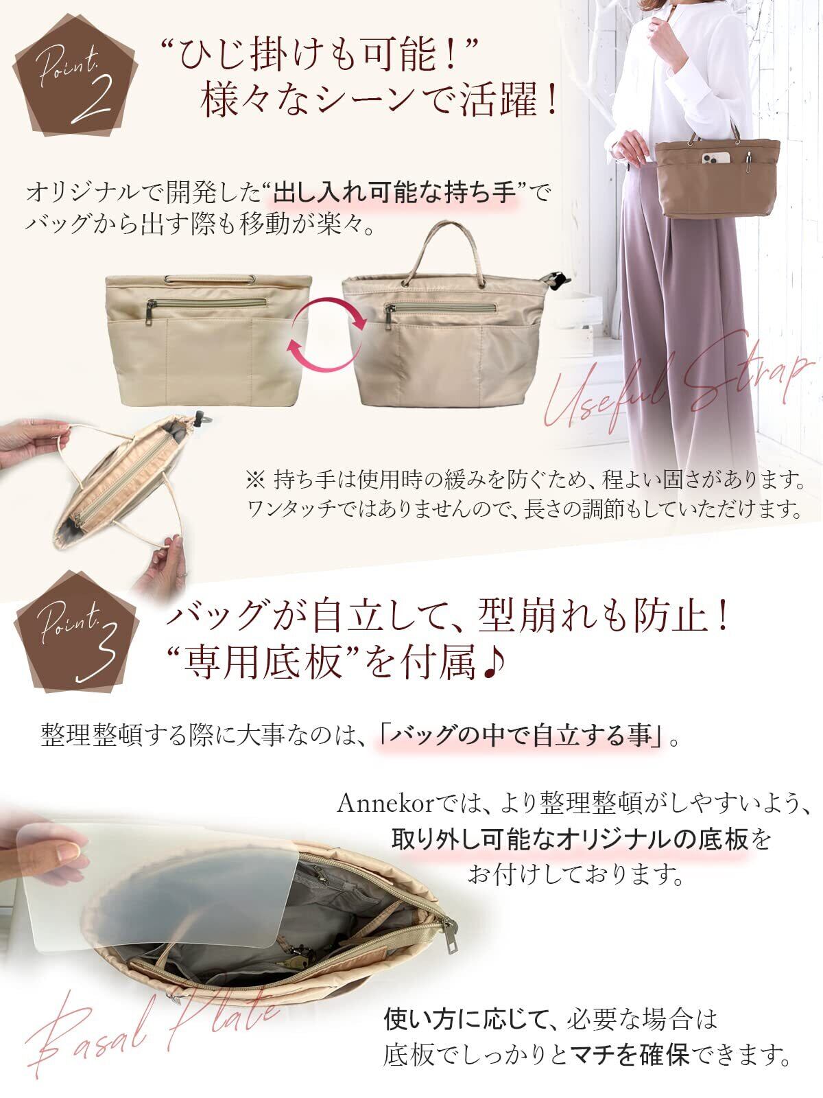 Annekor バッグインバッグ【新機能 とびだす持ち手】 バックインバック インナーバッグ 上質ナイロン 軽量 撥水 ポーチ インナーポーチ レディース メンズ [アンコール](モカ)