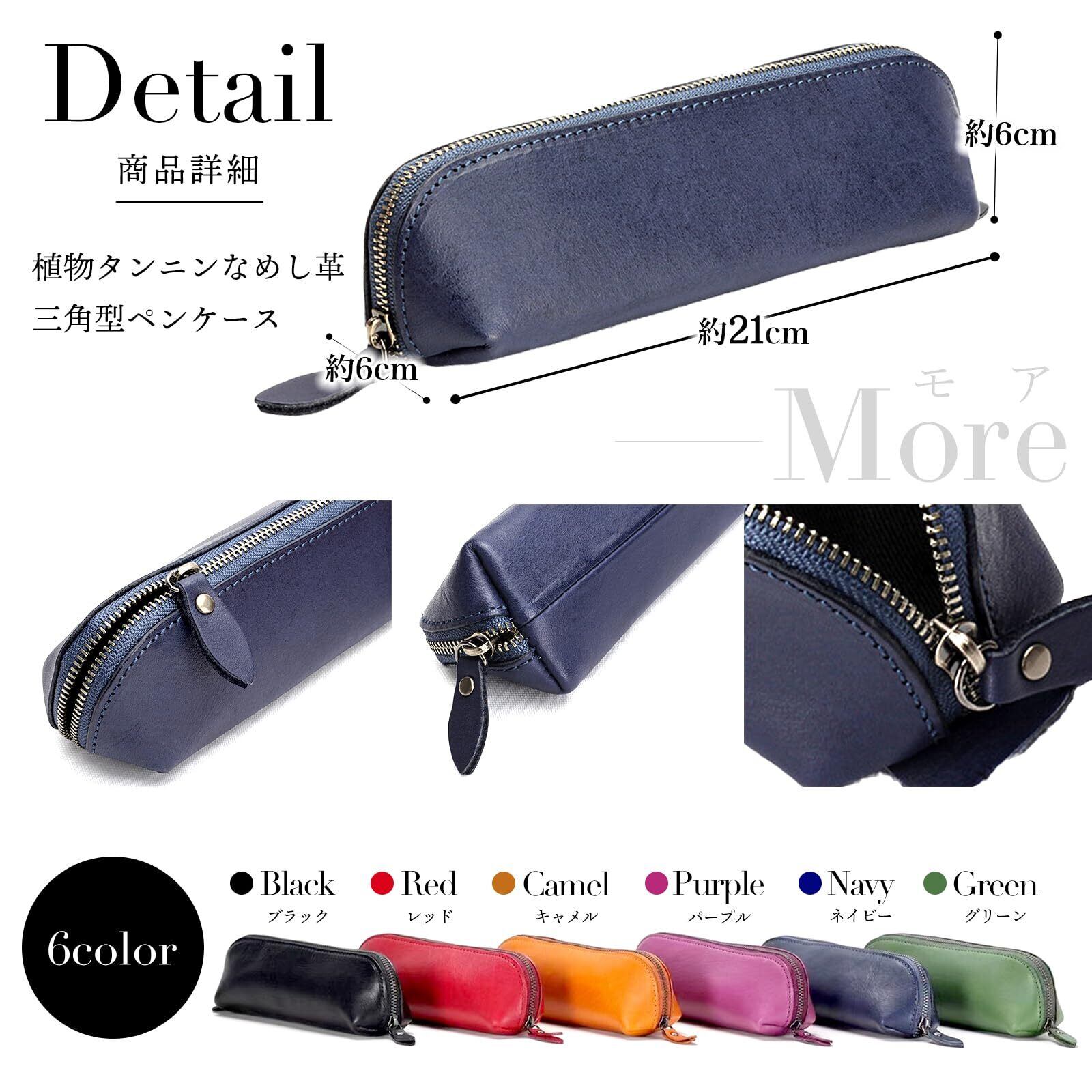 ペンケース More レザーソムリエ監修 植物タンニンなめし 大きめ 三角ペンケース 革職人設計(ネイビー)