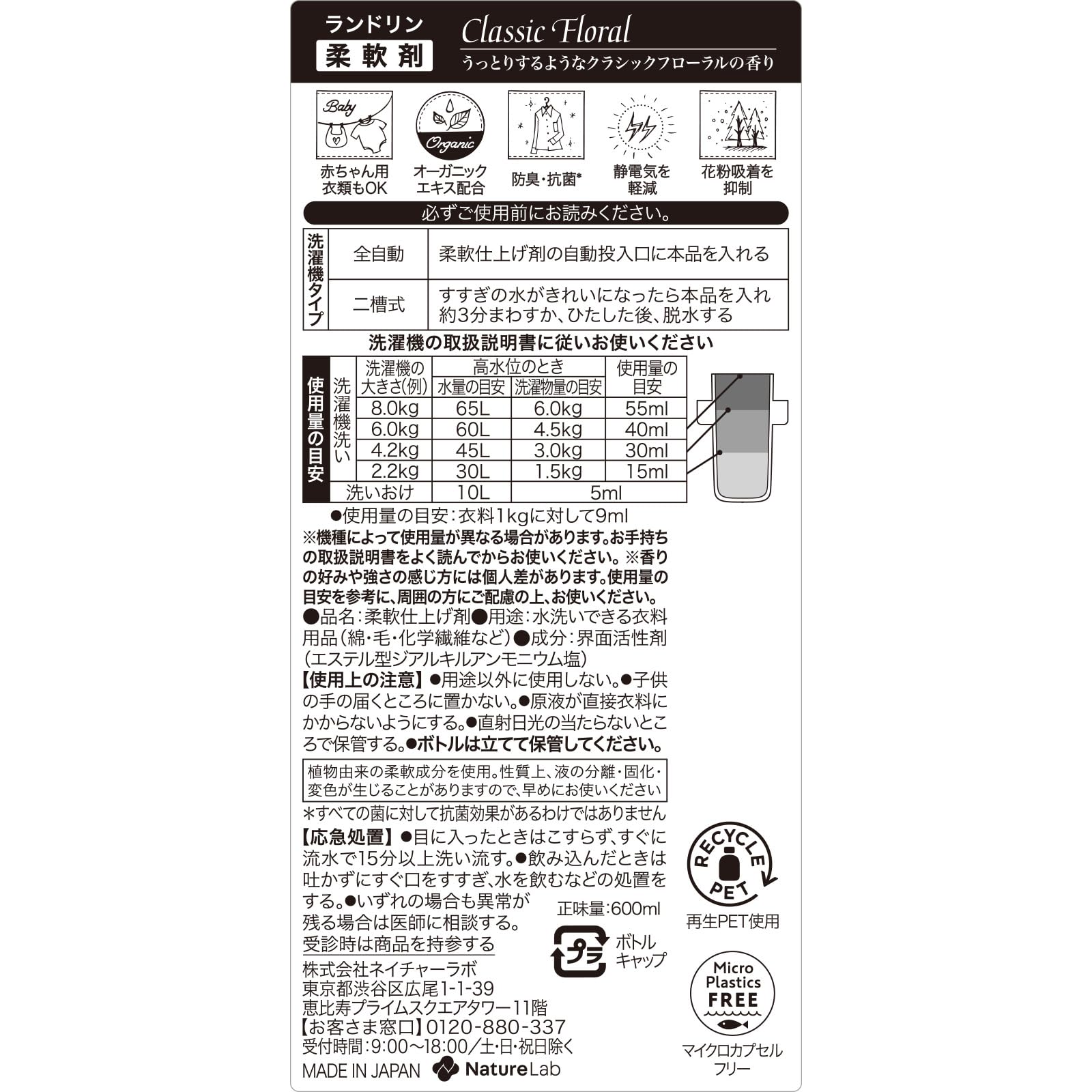 ランドリン 液体 柔軟剤 クラシックフローラル 600ml