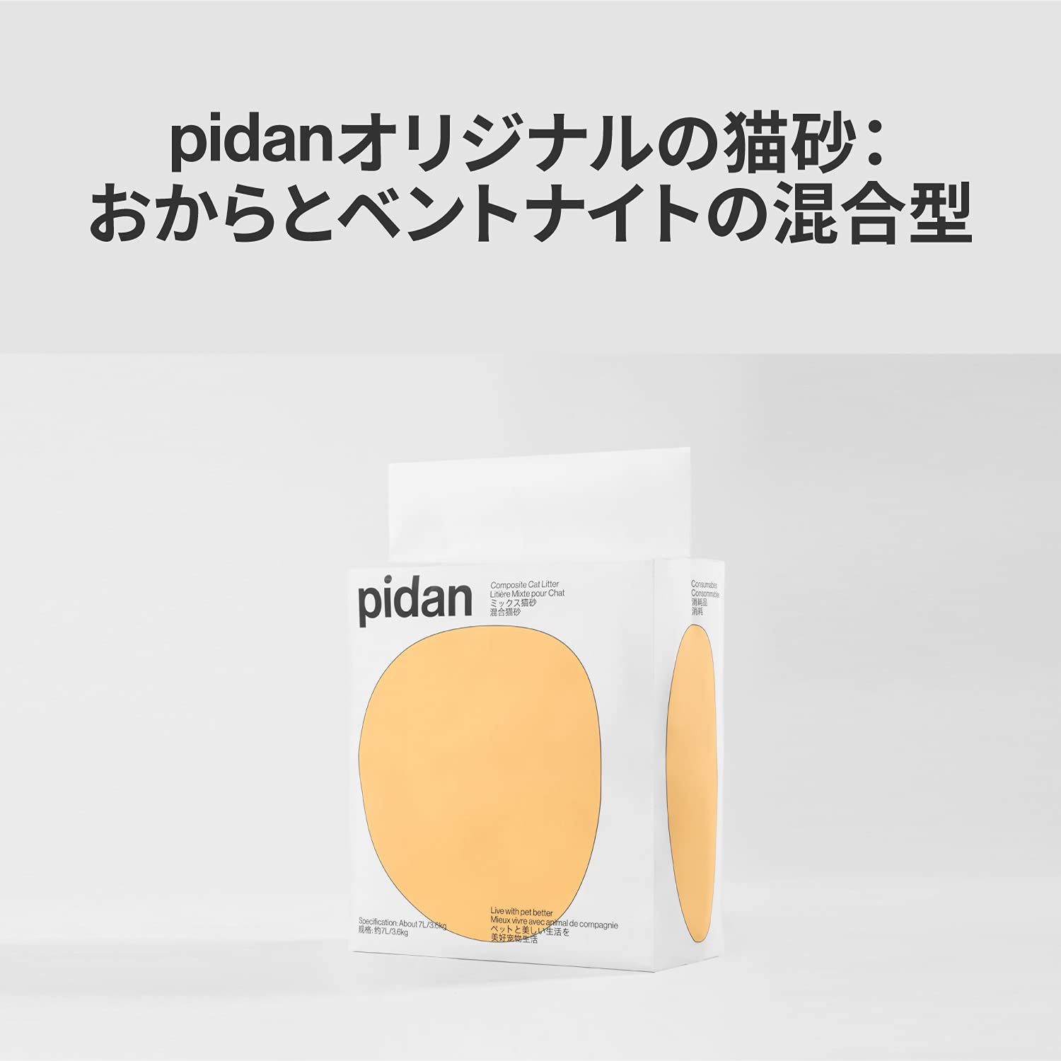 pidan 猫砂 おから 固まる ベントナイトとおから 混ぜる 脱臭 真空パック 飛び散らない 天然素材 臭みから解放 (3.6kg×1袋)