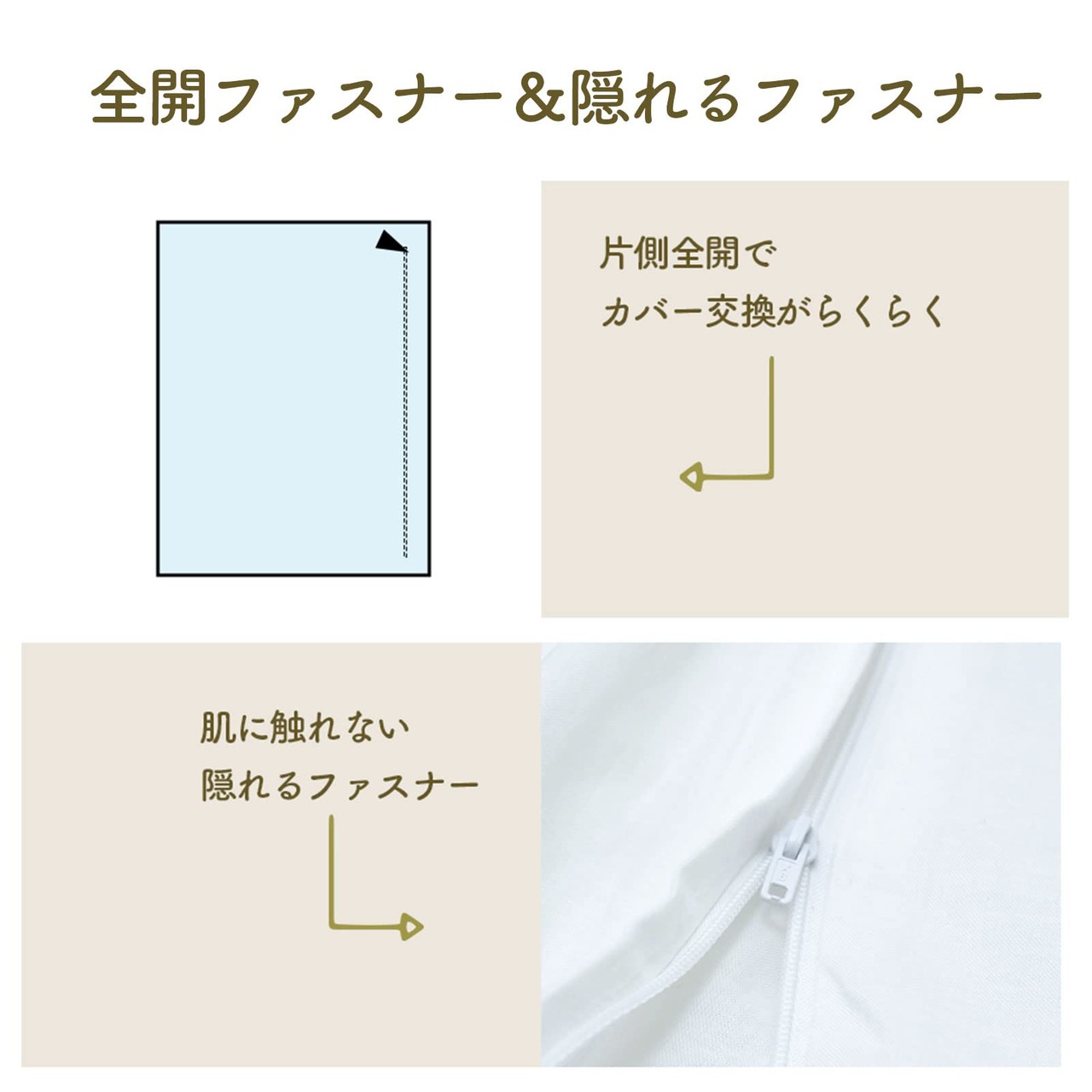 【商品仕様】生地:綿100% 全開ファスナー 8か所留めひも付 カラー:白(ホワイト) サイズ:105×215cm(シングルロングサイズに適合します)