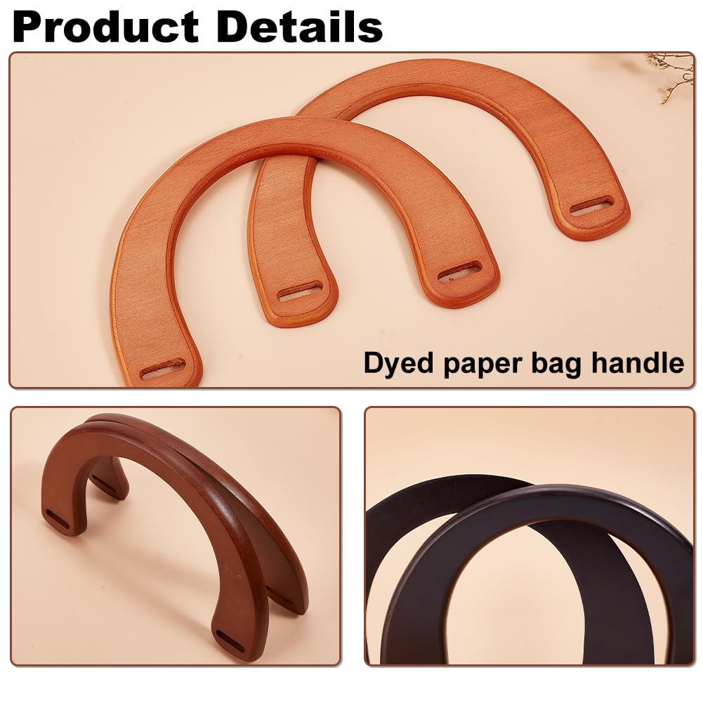 PH PandaHall 6個 木製持ち手 木工持ち手 バッグの持ち手 U形 木製 持ち手 取って ハンドメイド 修理 交換用 3色