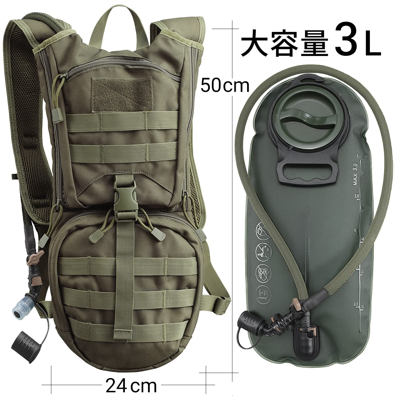KAMUI ハイドレーションバッグ 【大容量3L】 ミリタリーバックパック付き給水機能 - トレイルランニング、ハイキング、サイクリング、キャンプ、スキー、スノーボード、サバイバルゲームなどに最適