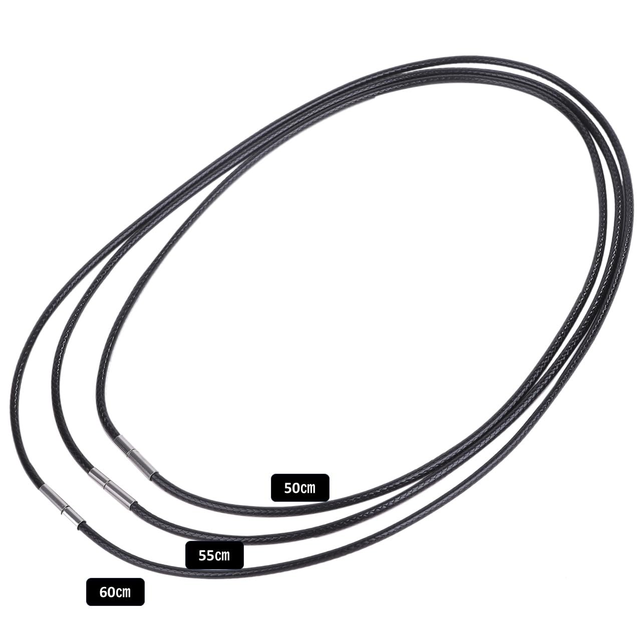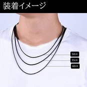 【選べるカラーサイズ】カラーは人気のブラックをご用意しました。太さは2mmです。長さは55㎝・60㎝です。紐ネックレスはどんなファッションにも合わせやすく、男性・女性問わずに使えるシンプルなデザインなのでプレゼントにも最適です。