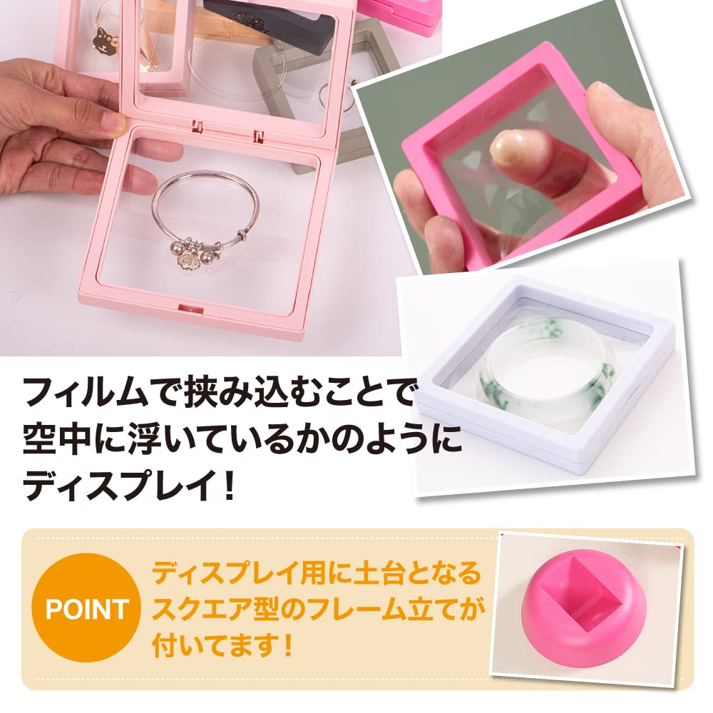 AllBright ディスプレイスタンド アクセサリーケース ルースケース 7x7cm 10個 ディスプレイ ケース 小物 展示 保管 ルースケース 透明フィルム 台座付き (ブラック)