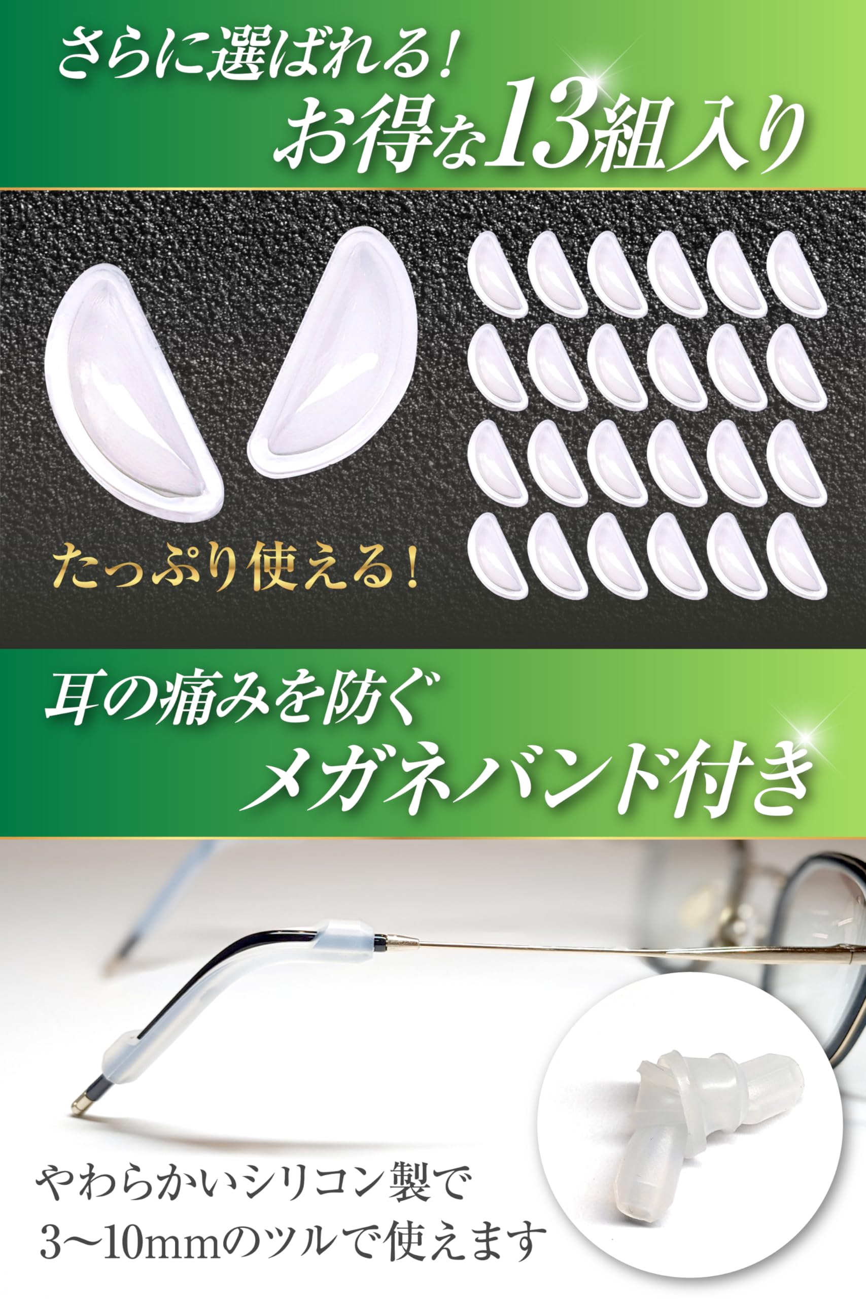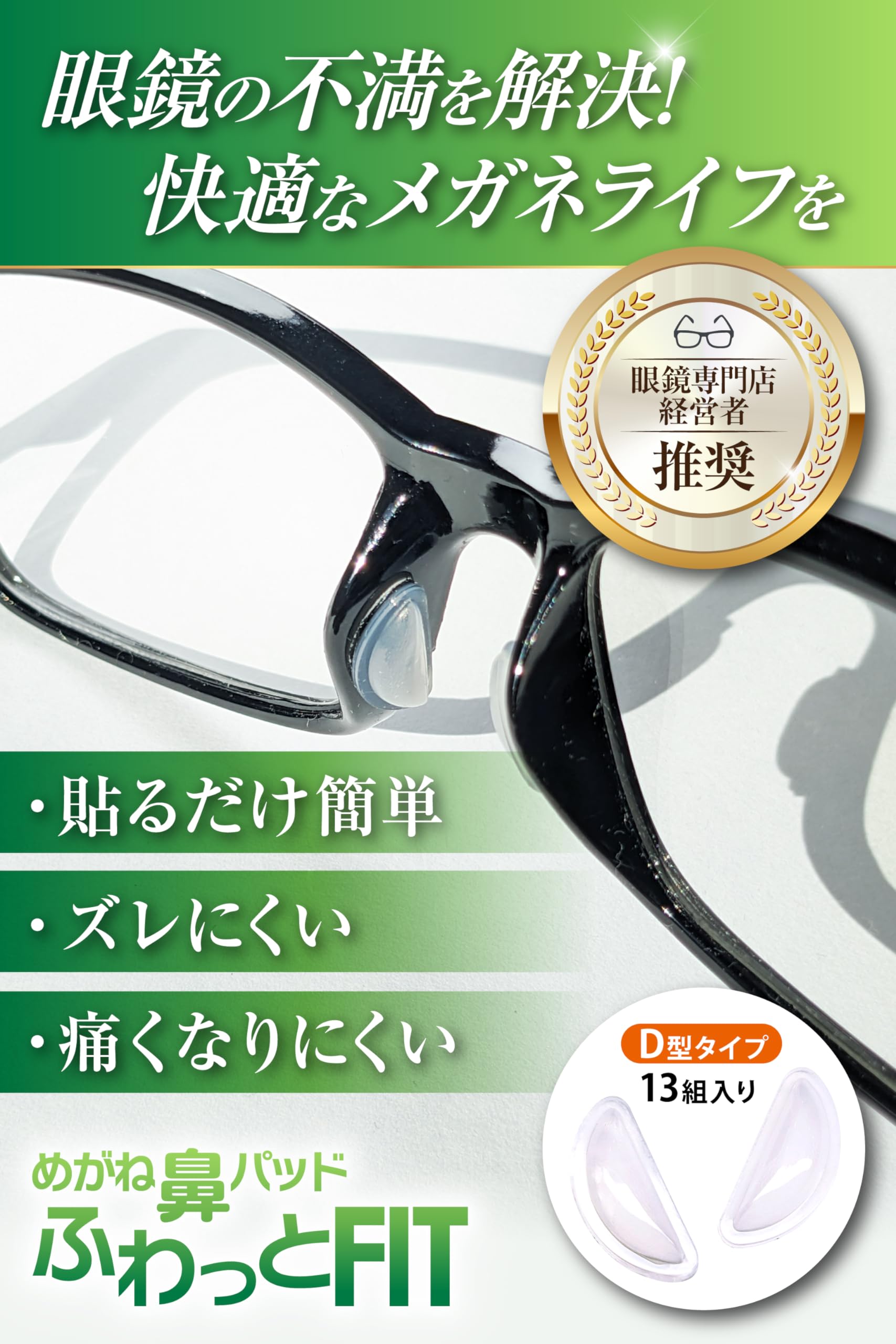 【眼鏡のずれ防止】滑り止め加工でメガネを滑るのを防ぎます。メガネの鼻あてにふわっとフィットし、鼻に優しく快適な掛け心地を体感できます。
