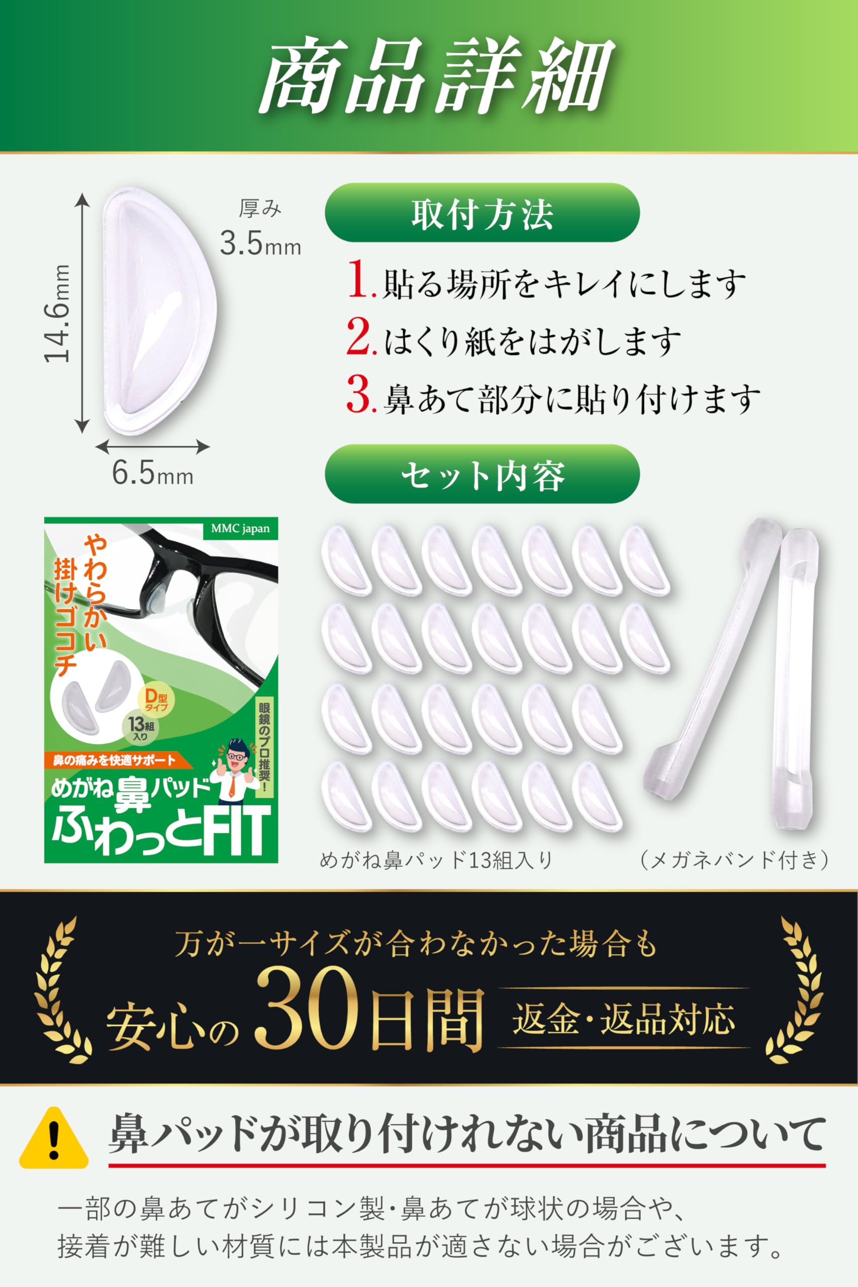 [MMC japan] ふわっとFIT 眼鏡 メガネ サングラス 鼻パッド 眼鏡鼻パッド メガネ滑り止め ずれ落ち防止 シリコン 鼻の痛み 鼻の疲れ 目の疲れ