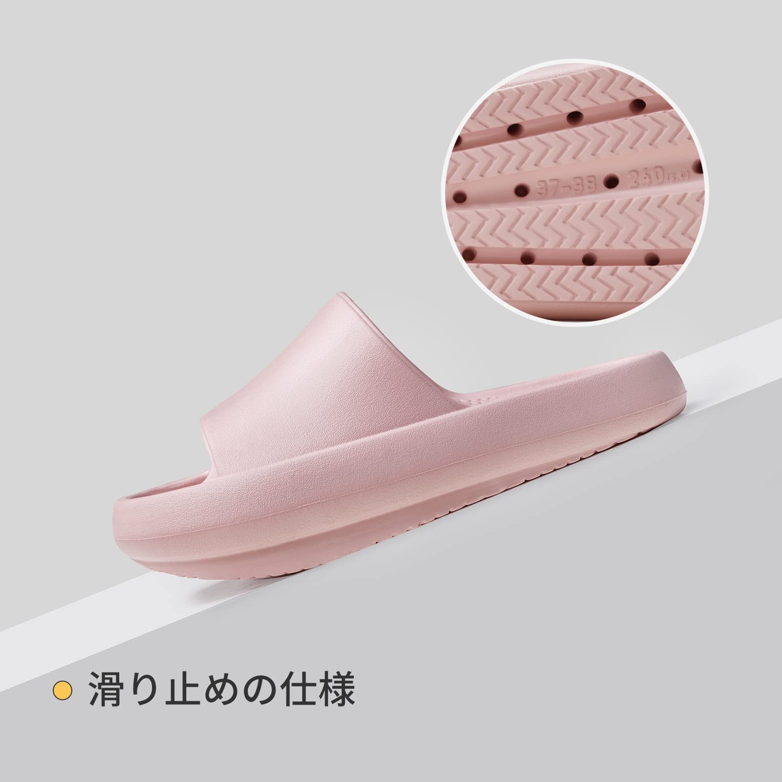 【人間工学】中底にアーチの形状で隆起しているので土踏まずを支え、負担軽減で長時間履いて立っていても足が痛く感じることがありません。クッション性の高くて1センチ沈んだインソールが足を包み込み、くじくことを防ぎます。家事をしているときや、仕事や勉強を終えて家でくつろいでいるときに履くのが最適。