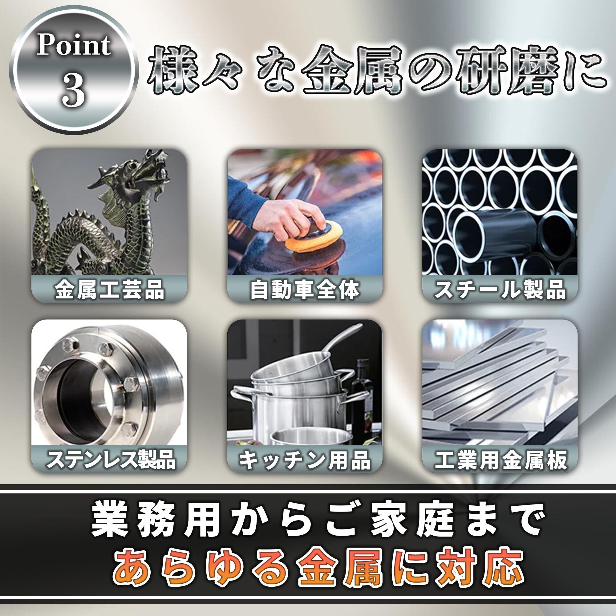 用途: 金属の研磨、磨き、バフ掛け、鏡面仕上げ