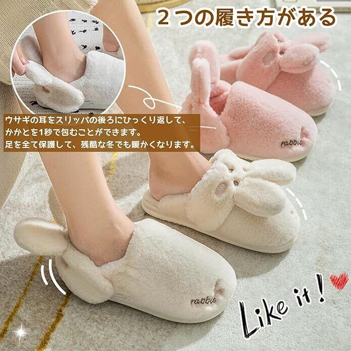 [Drawyume] スリッパ あったかい 室内履きレディース メンズ モコモコ かわいい スリッパ ウサギスリッパ 保温 防寒 来客用ルームシューズ バニースリッパ 滑り止め 洗濯機 洗える 冬部屋用 暖かい スリッパ 軽量 足音 もこもこ
