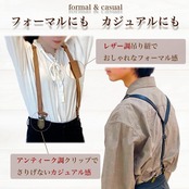 【様々なシーンで】メンズ、レディースどちらにも適した レザー 調 サスペンダーです。フォーマルとしてもカジュアルとしてもお使いいただけます。ビジネス、結婚式、発表会、パーティー、忘年会、新年会、普段使い用、仕事用など。プレゼントとしてもお勧めいたします。