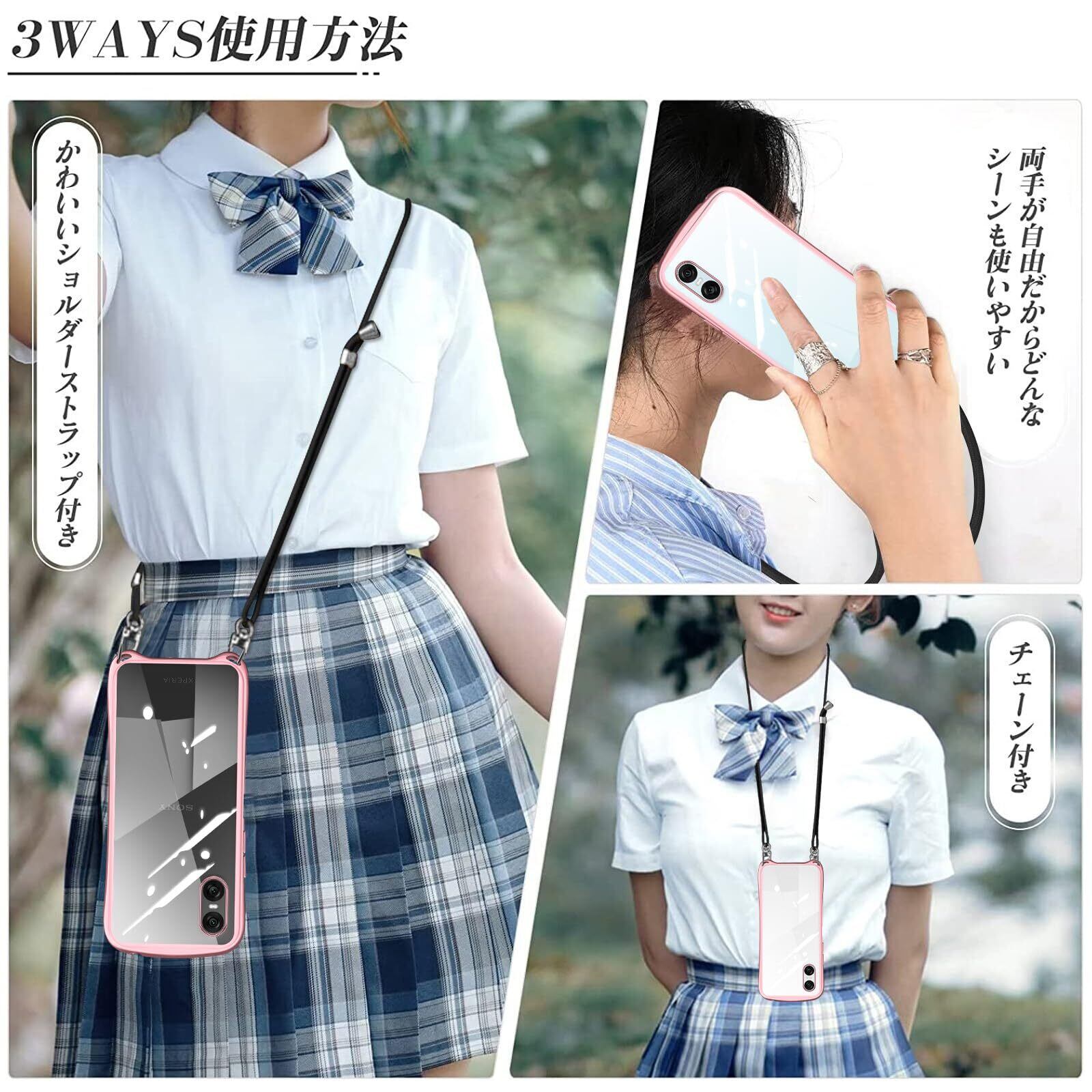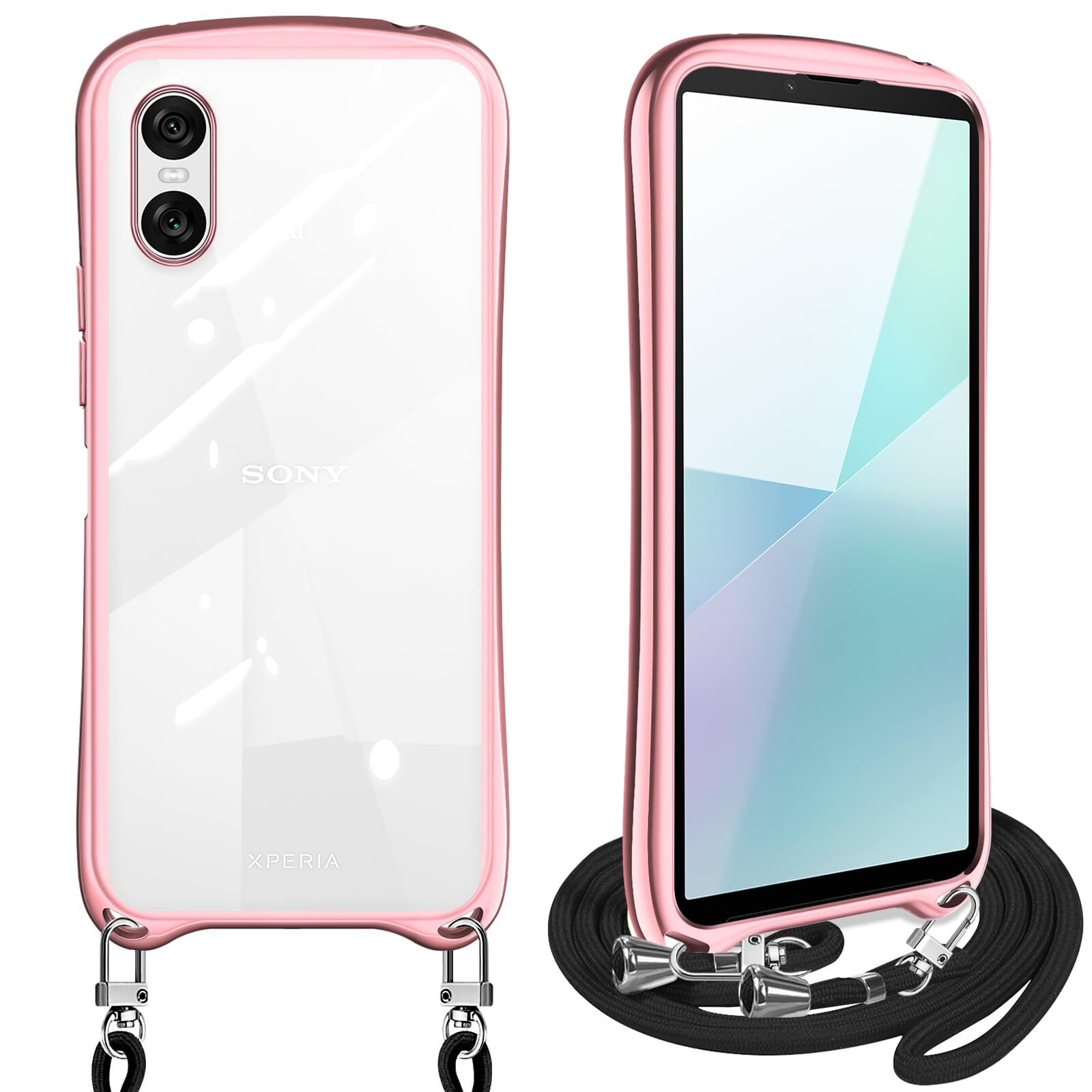 Xperia 10 VI ケース ショルダー クリア SO-52E SOG14 エクスペリア10vi スマホケース カバー 耐衝撃 透明 TPU ストラップ付き 肩掛け 首掛け 紐付き 斜めがけ シリコン 取り外し可能 長さ調整可能(ローズゴールド)