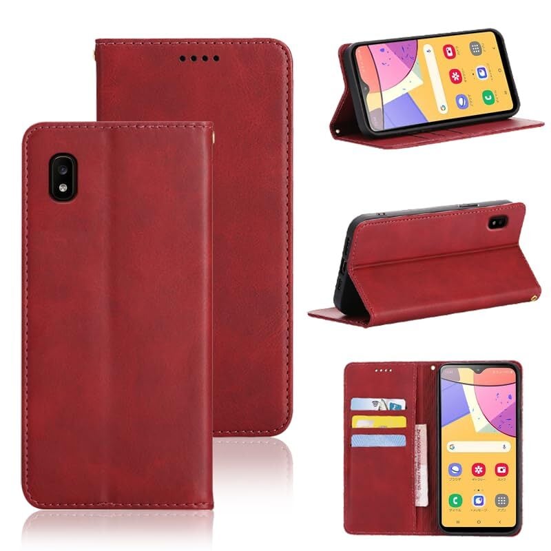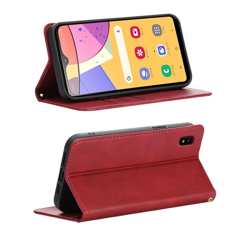 Galaxy A20 SCV46/ Galaxy A21 SC-42A ケース 手帳型 カバー PUレザー カード収納 財布型 耐衝撃 ケース マグネット スタンド機能付き 5色(Galaxy A20 SCV46/ Galaxy A21 SC-42A ケース 手帳型) (レッド)