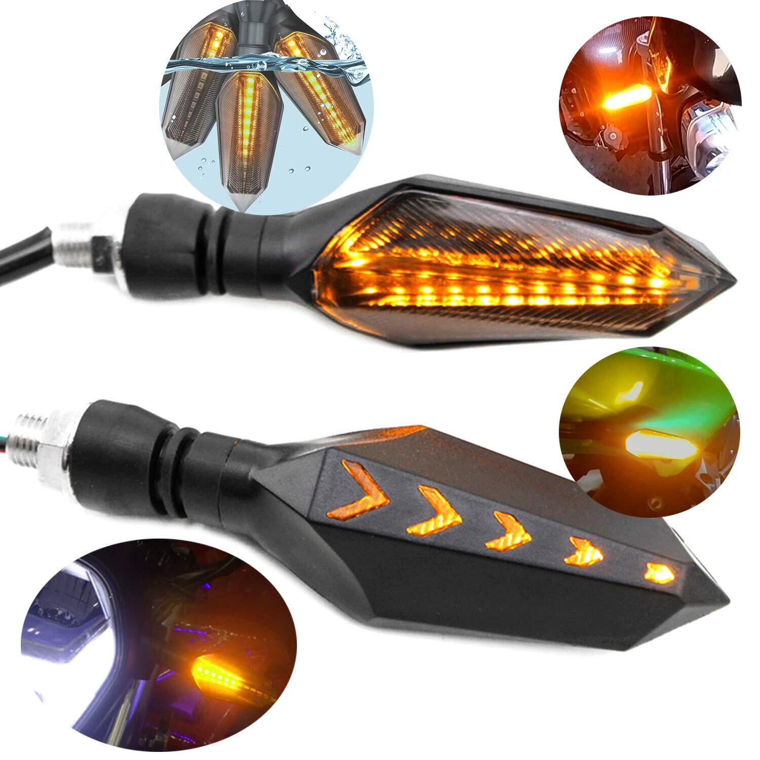 バイク 流れるウインカー シーケンシャル 12SMD led 12V バイク アンバー ウインカーライト led 高輝度 両面led 矢印形 ウインカーライト 耐衝撃設計 簡単取付 防水 汎用 (4個セット)