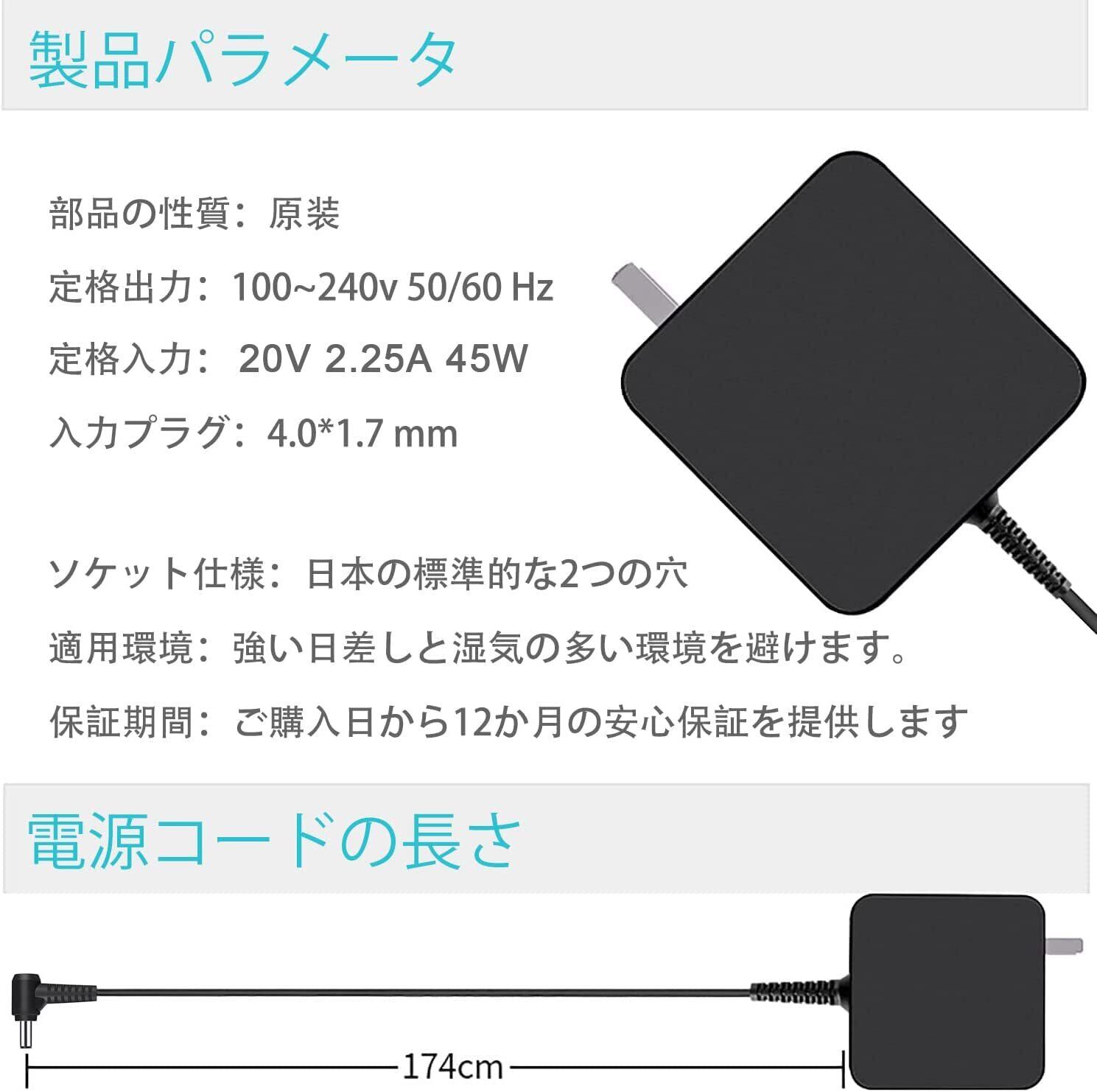 ACアダプター 45w Lenovo レノボ用 PC 充電器 Lenovo Ideapad Thinkpad Chromebook 710 100 110 110s 120s 310 320 320s 510 510s 710s 720s N22 N23 N24 Flex 4-1130 Yoga 710 NEC LAVIE PC-VP-BP132 GN21L2 / GH NS300RA NS600RA NS700RA PC-NS300RA PC-NS600RA ACアダプター 互換電源 パワーサプライ4.0*1.7 mm 黑い先端 [PSE規格品]