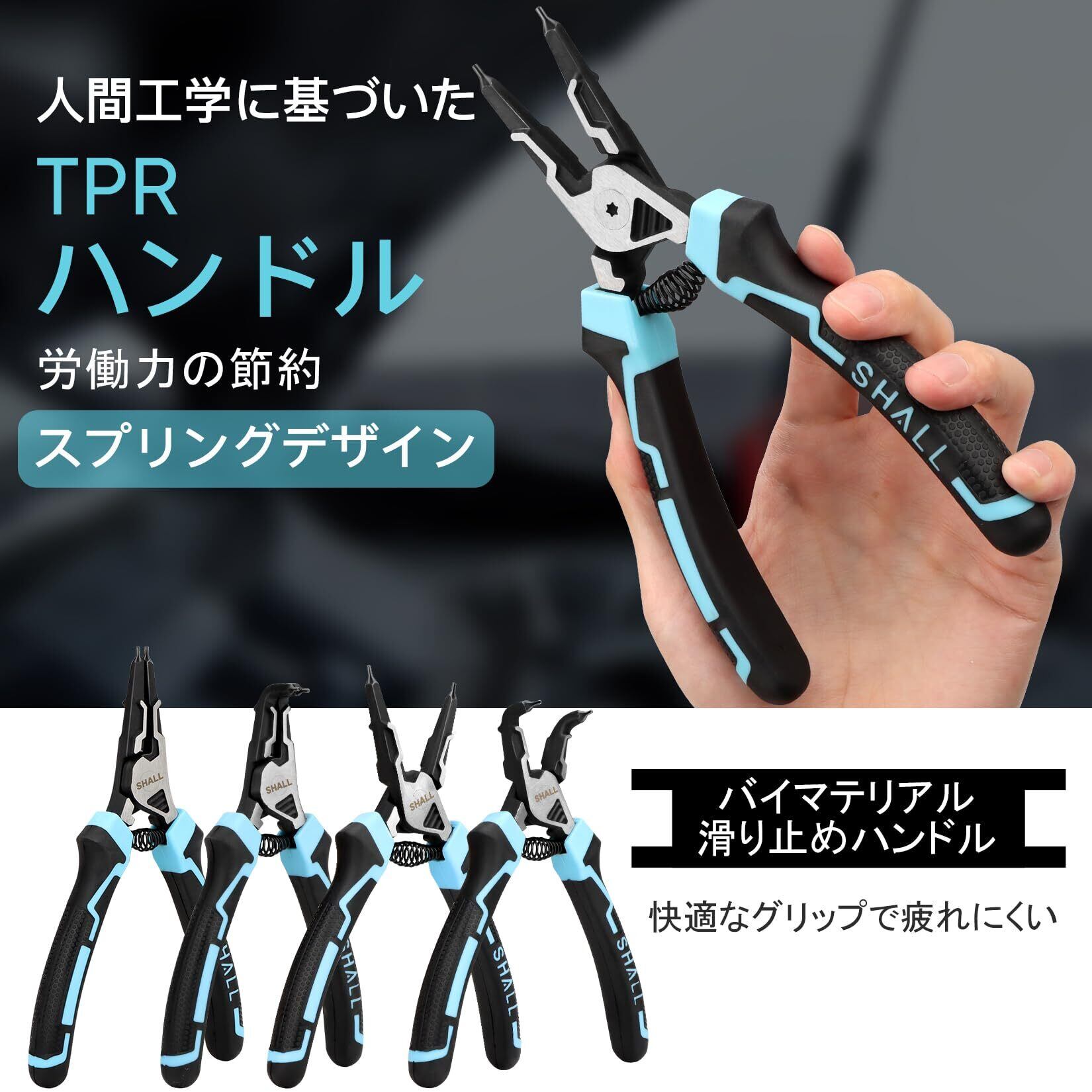 SHALL 4本組 スナップリングプライヤー Cr-V材質 穴用 直爪 軸用 曲爪 錆びにくい C型リングの着脱 バネ付き 工具 作業 修理 ポータブルポーチ付き