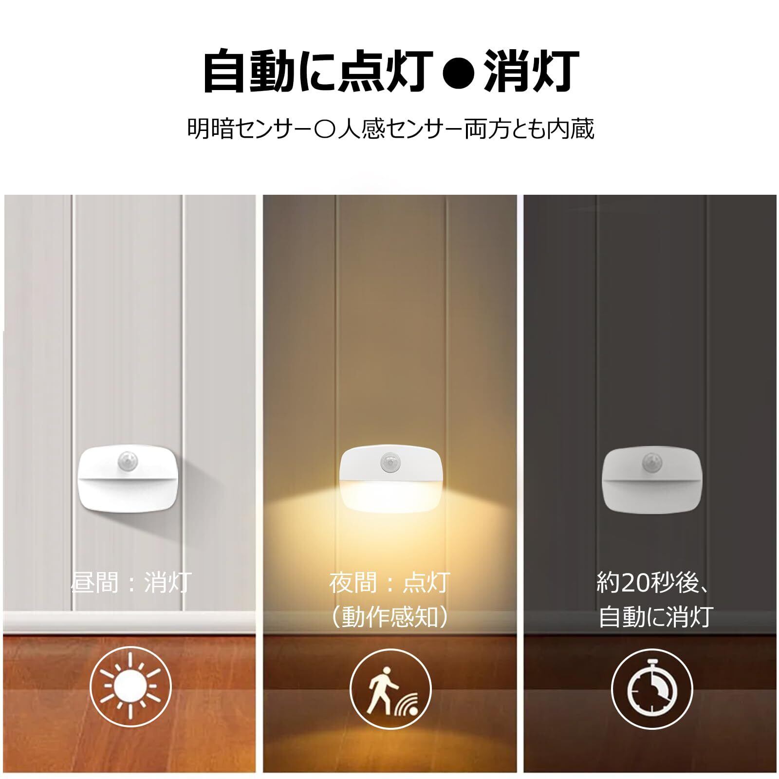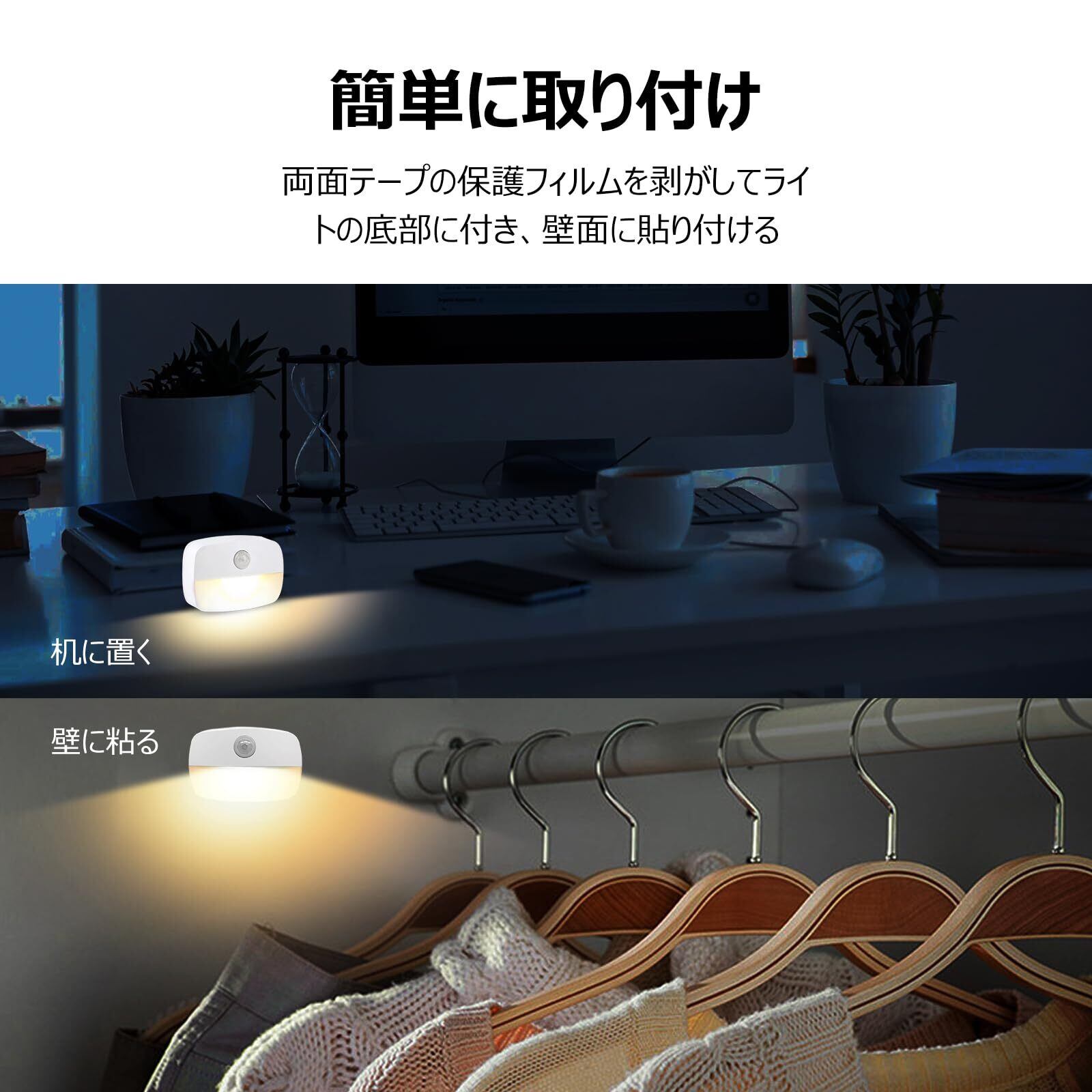 Ledセンサーライト 暖色 電池式 足元灯 フットライト 人感センサー 配線不要 ナイトライト 明暗光センサー 自動点消灯 冷蔵庫照明 玄関 クローゼット 室内ルームライト 小さい 壁掛け 電池別売り カバーなし(4個セット, 暖色)