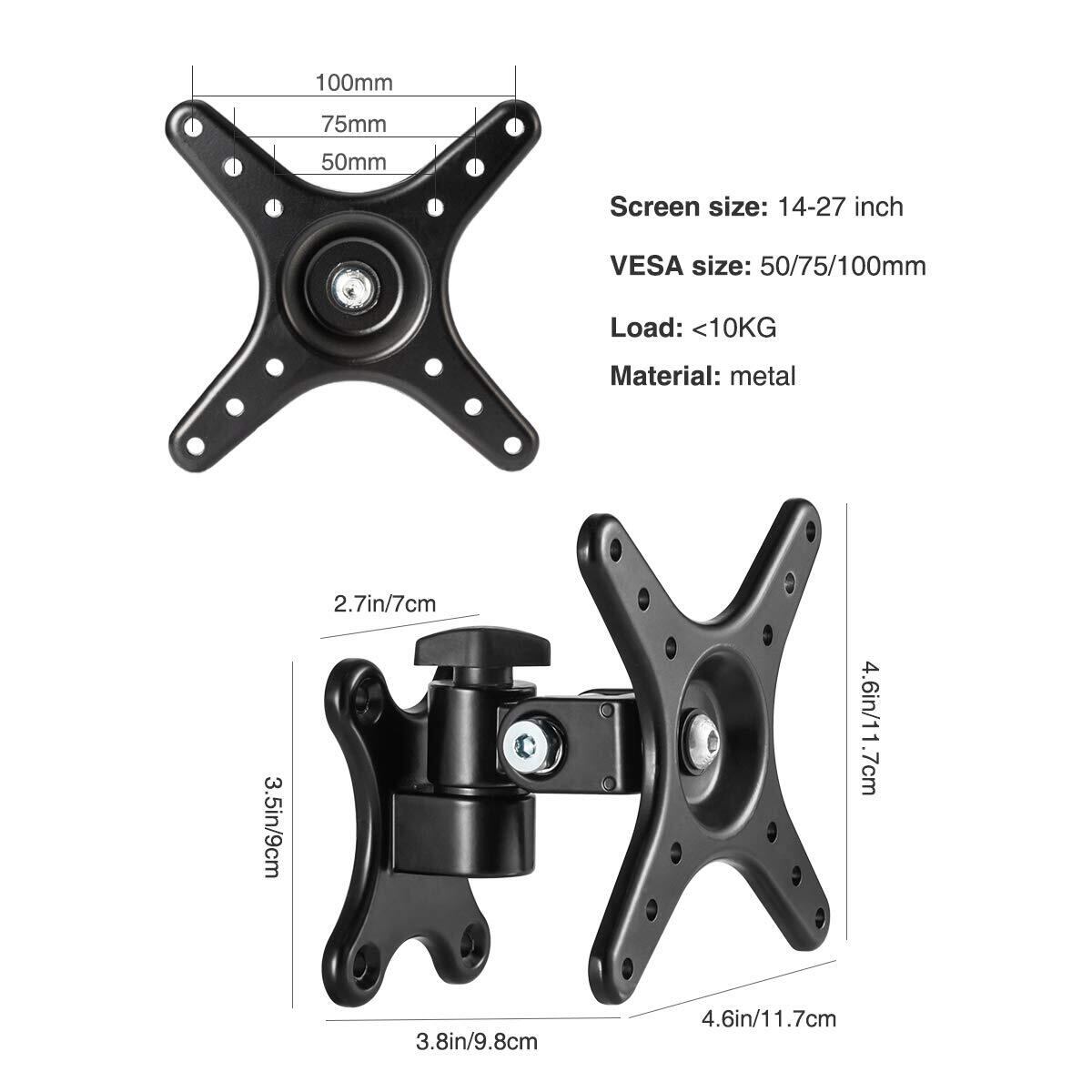 対応機種:耐荷重は18kgで、14~27インチ、 VESA規格75x75mmおよび100x100mmの液晶テレビ、PCモニター、ディスプレイなどに対応しています