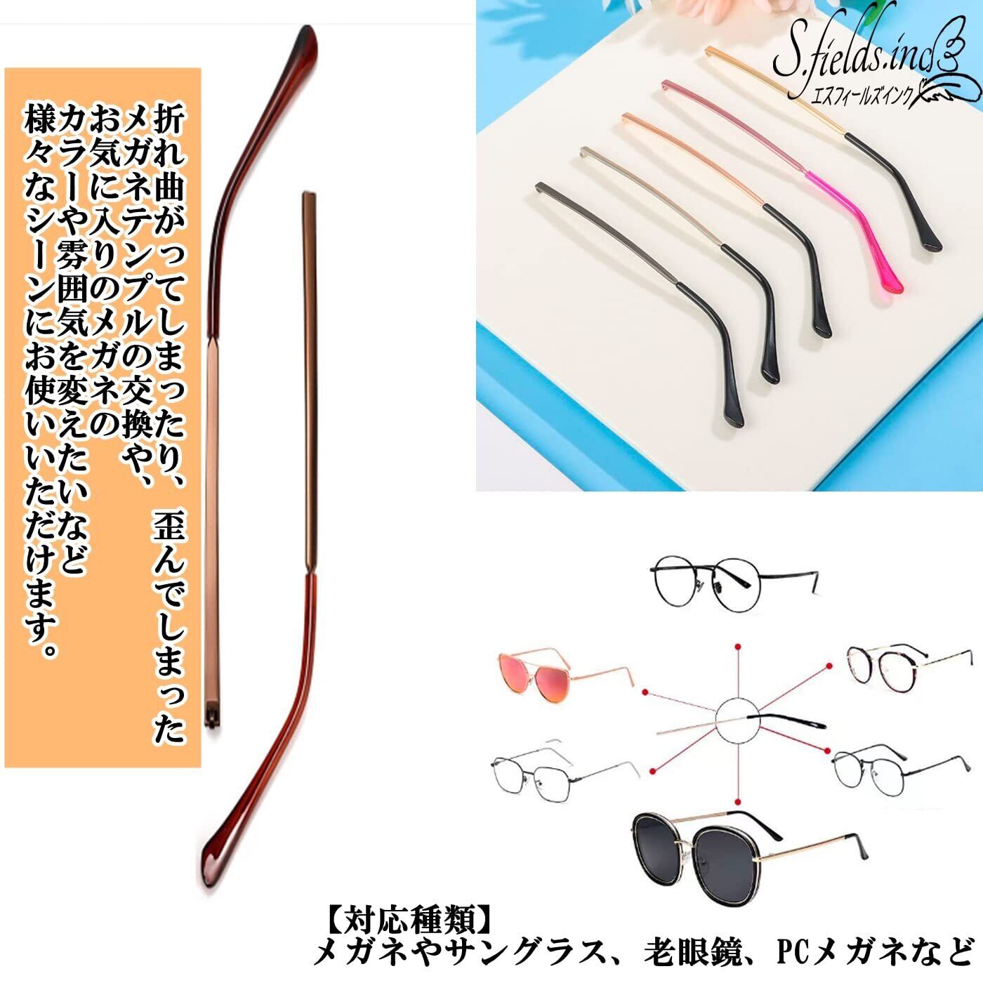 [S.fields.inc] [エスフィールズインク] メガネテンプルアーム 眼鏡つる交換 ヒント付き 眼鏡フレーム修理 眼鏡小物 ストレート