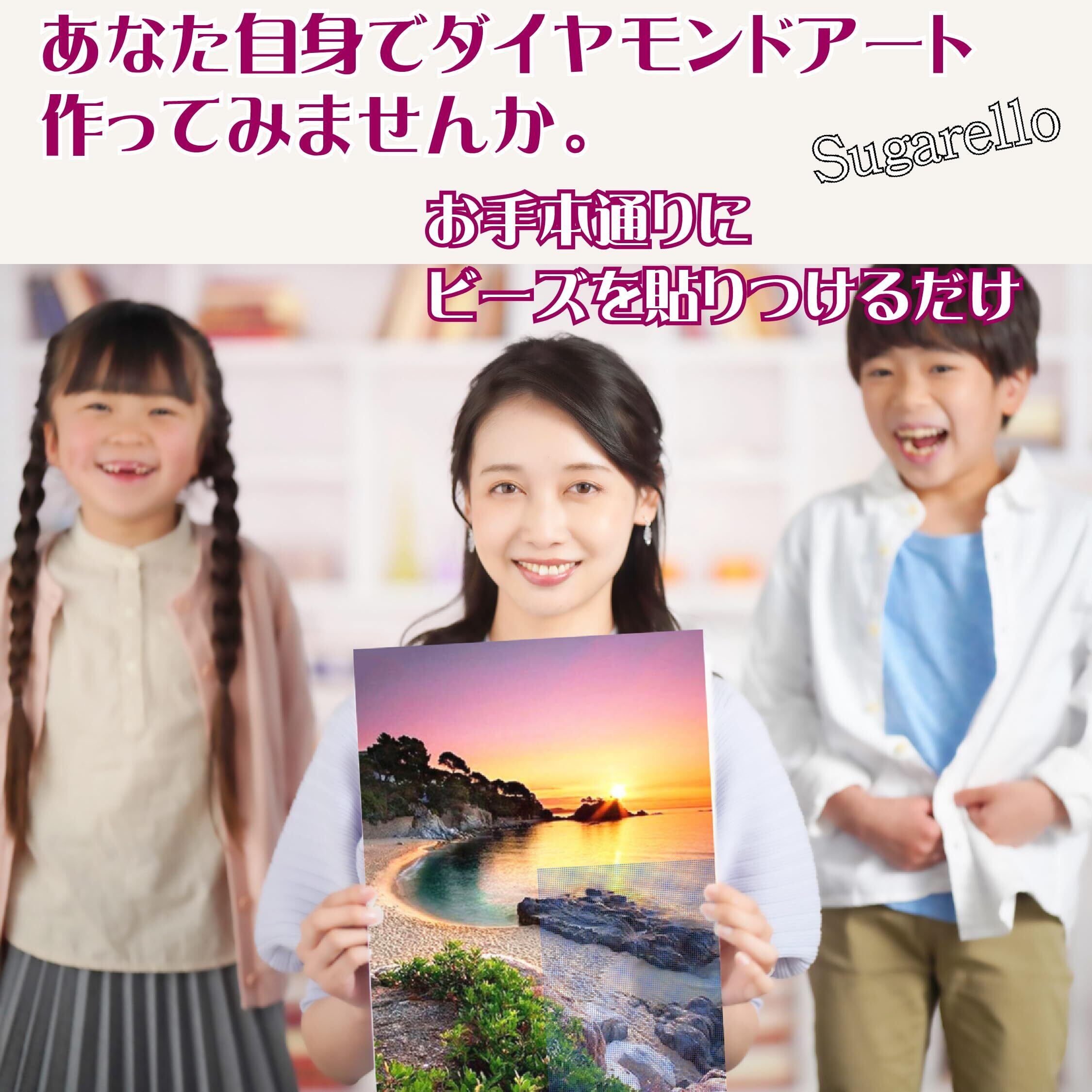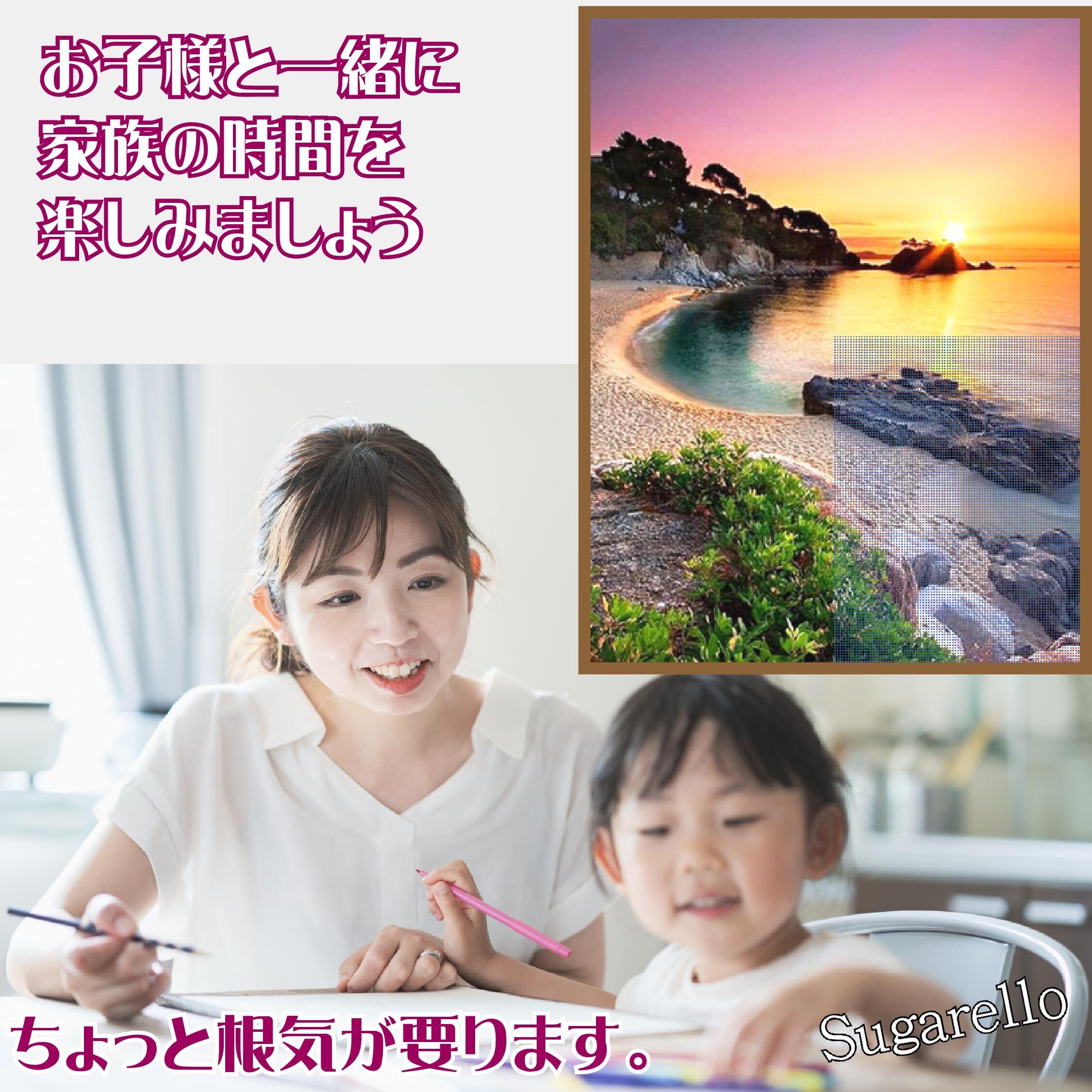 Sugarello ダイヤモンドアート ビーズ絵画 ダイヤモンドペインティング 刺しゅうキット モザイクアート 絵画キット 手芸 手作り絵画 ビーズアート 全面貼り付けタイプ 30x40cm (海辺の夕日)