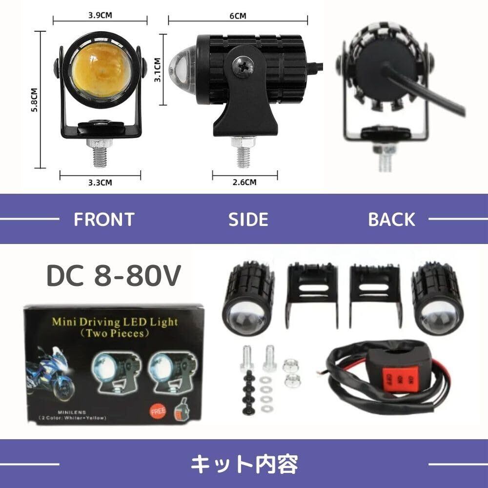LEDバイクフォグランプ 2個セット 12V/24V対応 2色切替 ホワイト/イエロー 高輝度 スイッチ付き