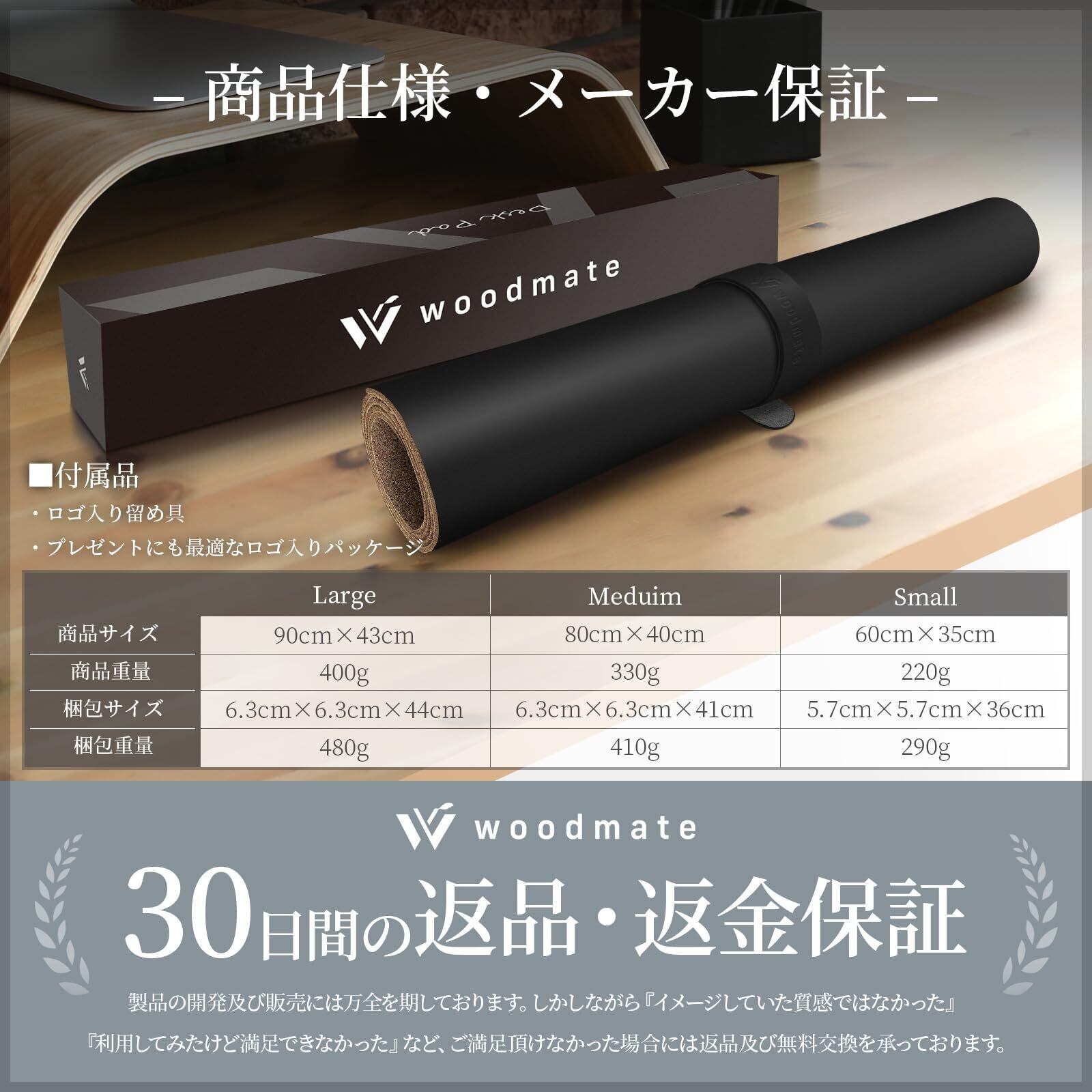 Woodmate 空間を調和するデスクマット 『空間デザイナー監修』 レザー 裏面コルク デスクパッド (ブラック, 90cm × 43cm)