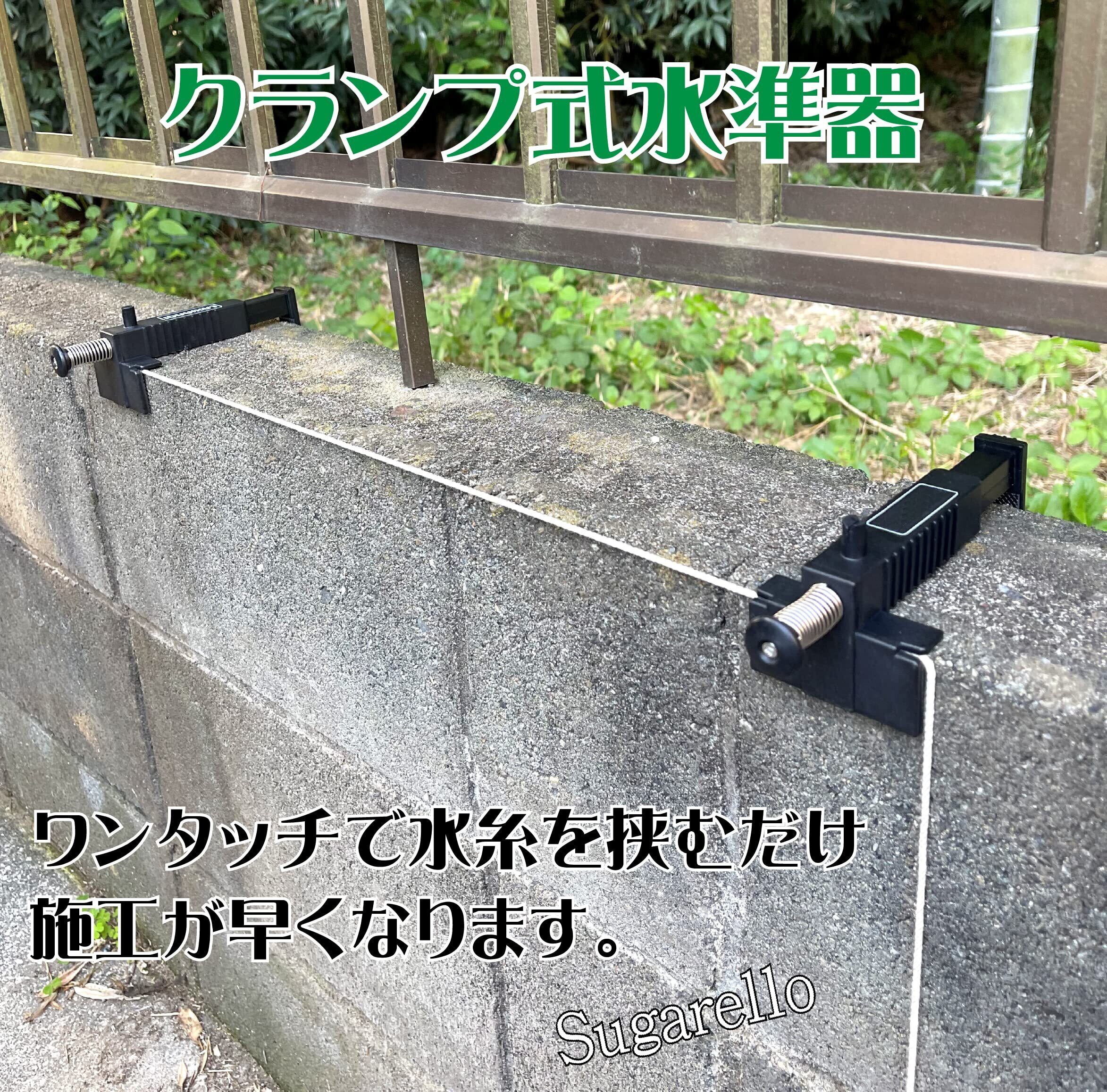 Sugarello クランプ 水平器 水糸 墨出し 水盛 ブロック積み 型枠 レベル出し 組積造ツール 水準器 土木道具 型枠大工 ブラック (2個セット)