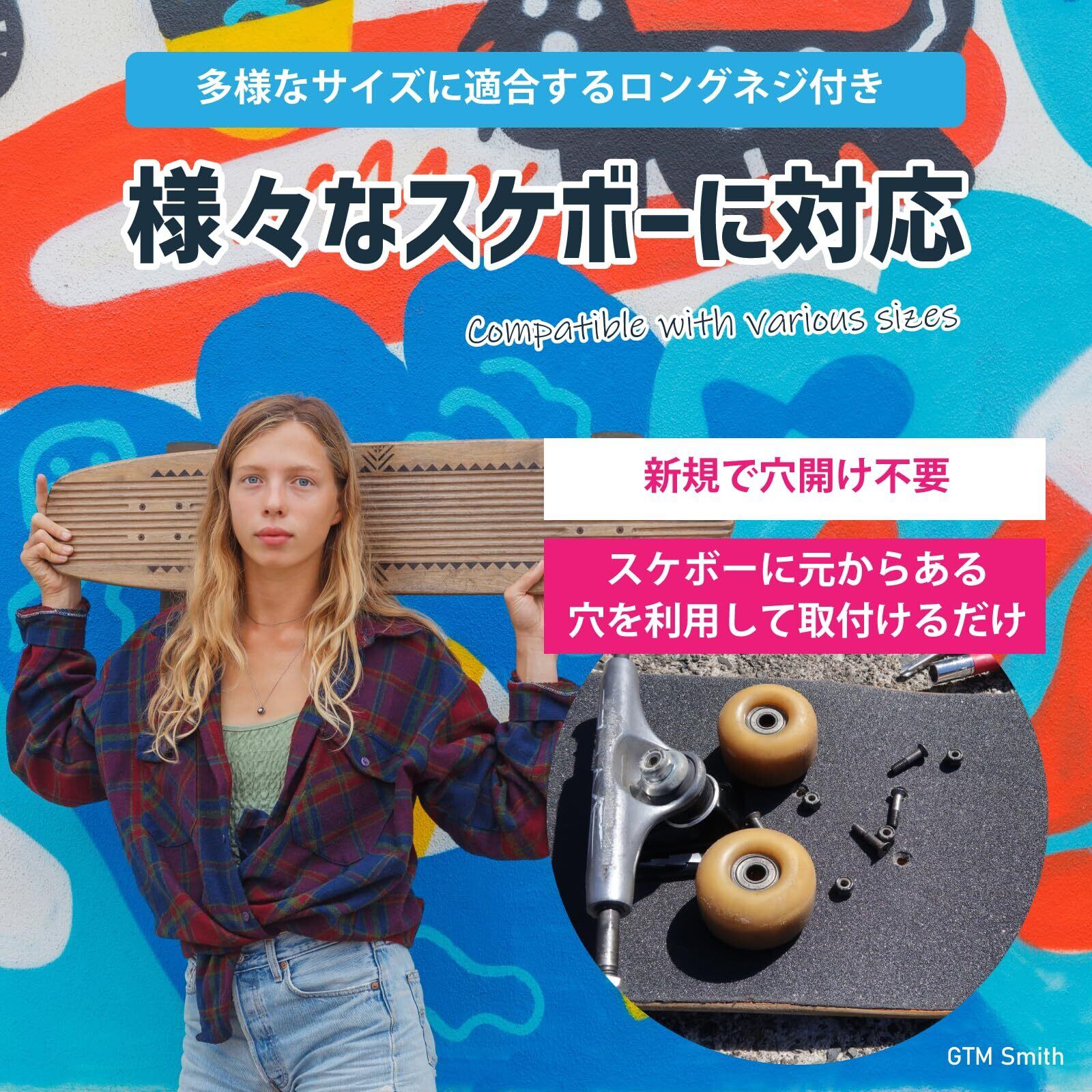 【様々なスケボーに対応】スケボーに元からある穴を利用して取り付けることが出来る、新規で穴を開けないスケボーハンガーフックで、様々なスケートボードに適合するロングネジを付属したアイテムです。