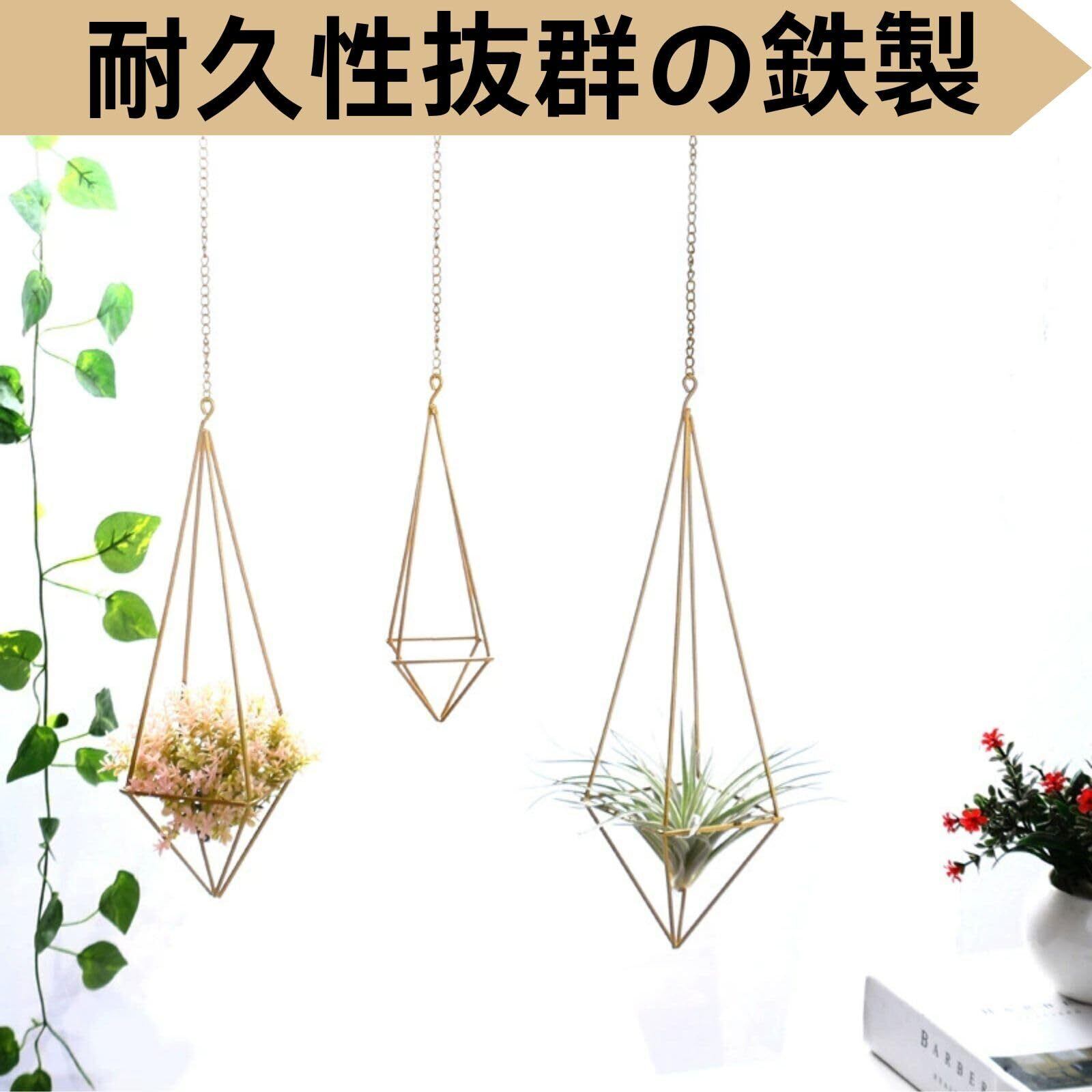 ユアクト プラントハンガー エアプランツ プラントホルダー 吊るす 園芸ラック 屋内屋外 全長48.5×幅8cm (ゴールド)
