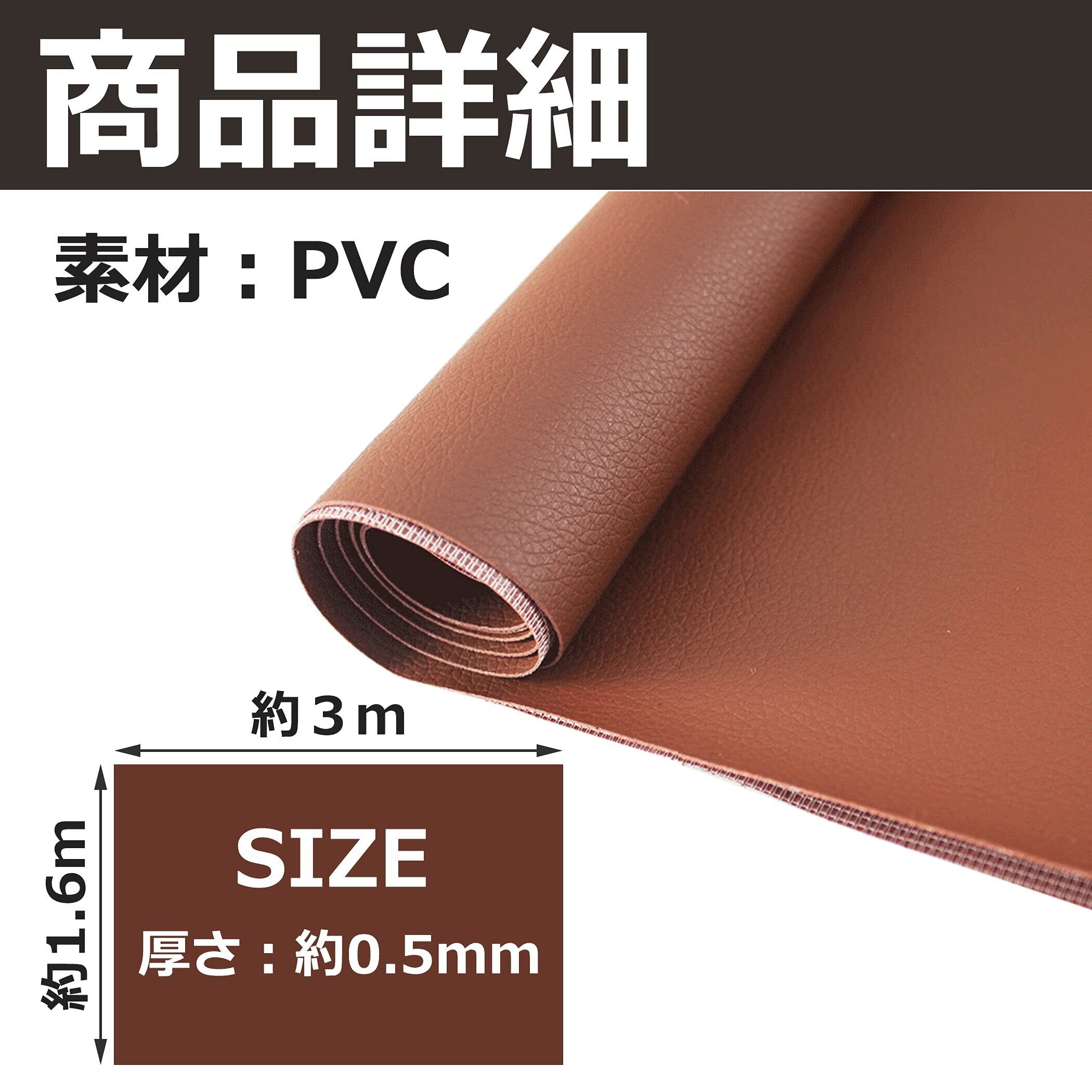 ハンドメイド制作で役立つ:レザー製品の補修に役立つPVC素材の生地です。サイズは約3×1.6m、厚さは約0.5mmです。ハンドメイドの椅子やクッションの作成にも役立つでしょう。