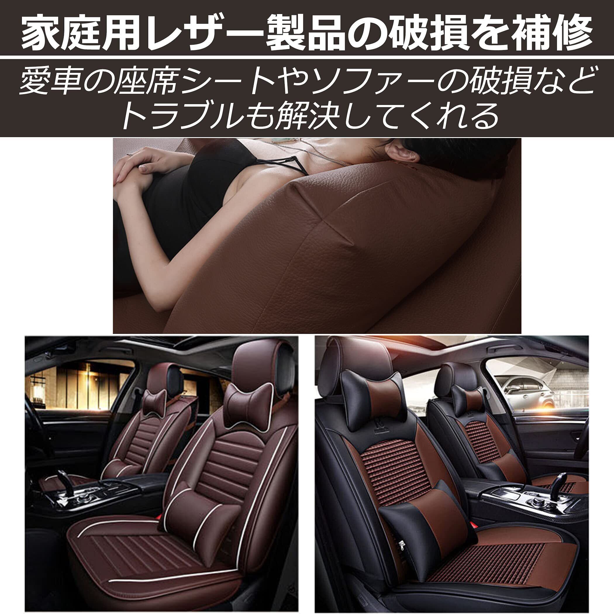 家庭用レザー製品の破損を補修:愛車の座席シートや家庭用ソファーの破損など、長年愛用しているものが経年劣化やペットのいたずらによって破損してしまうこともあるといえるでしょう。そのようなトラブルも解決してくれる製品です。