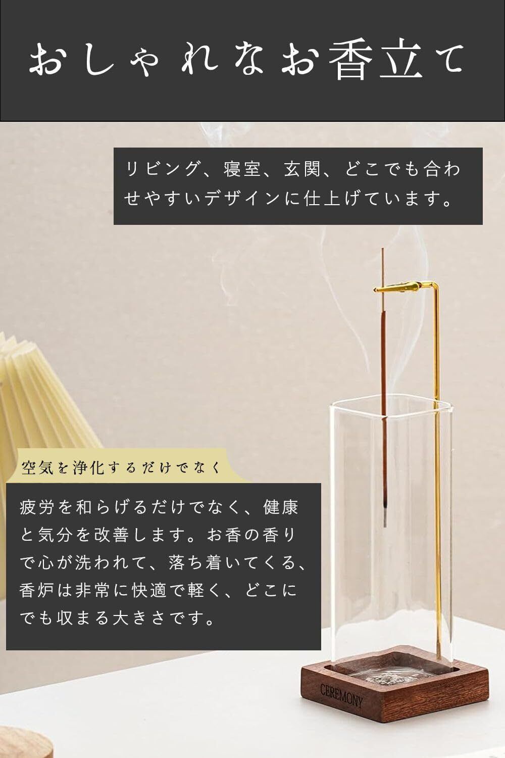 CEREMONY お香立て 灰がこぼれない 御洒落 ガラス高さUP 長香にも対応 香炉 線香立て 仏壇 書斎 瞑想 玄関先(お香は付いていません)