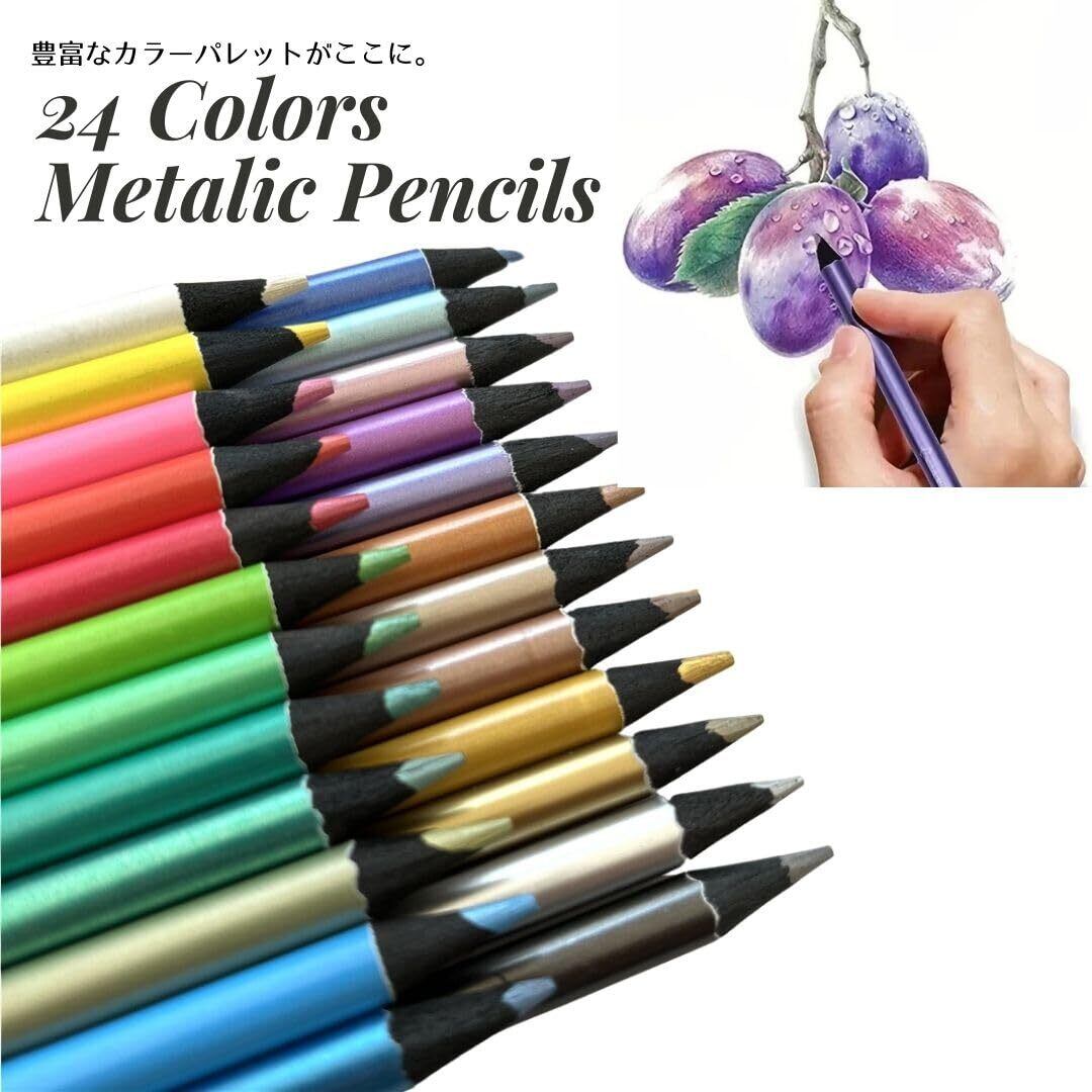 Copeflap 色えんぴつ メタリック 色鉛筆 メタリックカラー グリッター 金 銀 銅 蛍光色 (24色)