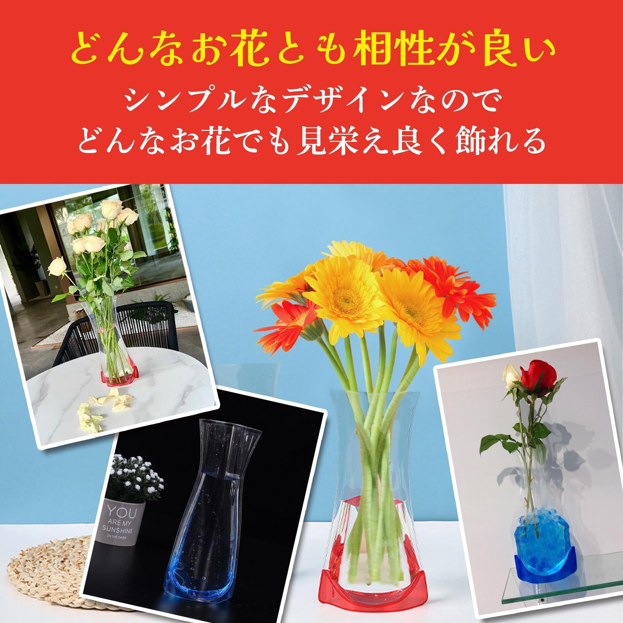 ペットや小さなお子さんがいるご家庭でも使いやすい:落としても割れたりしないPVC製の花瓶ですので、ペットや小さなお子さんがいるご家庭でも活用しやすいです。折りたたみ式ですので、使わない時は省スペースで収納できます。
